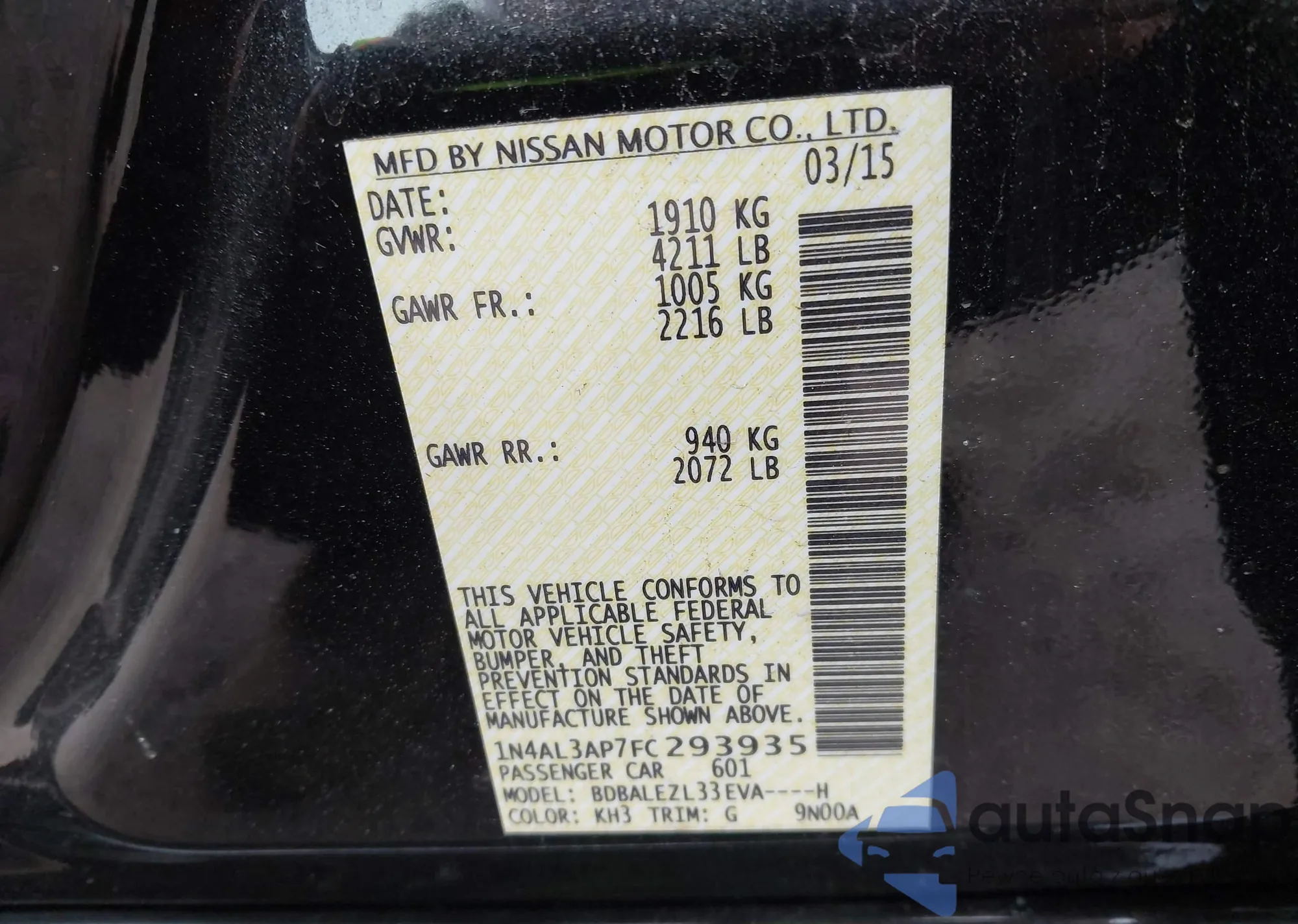 • VIN 1N4AL3AP7FC293935