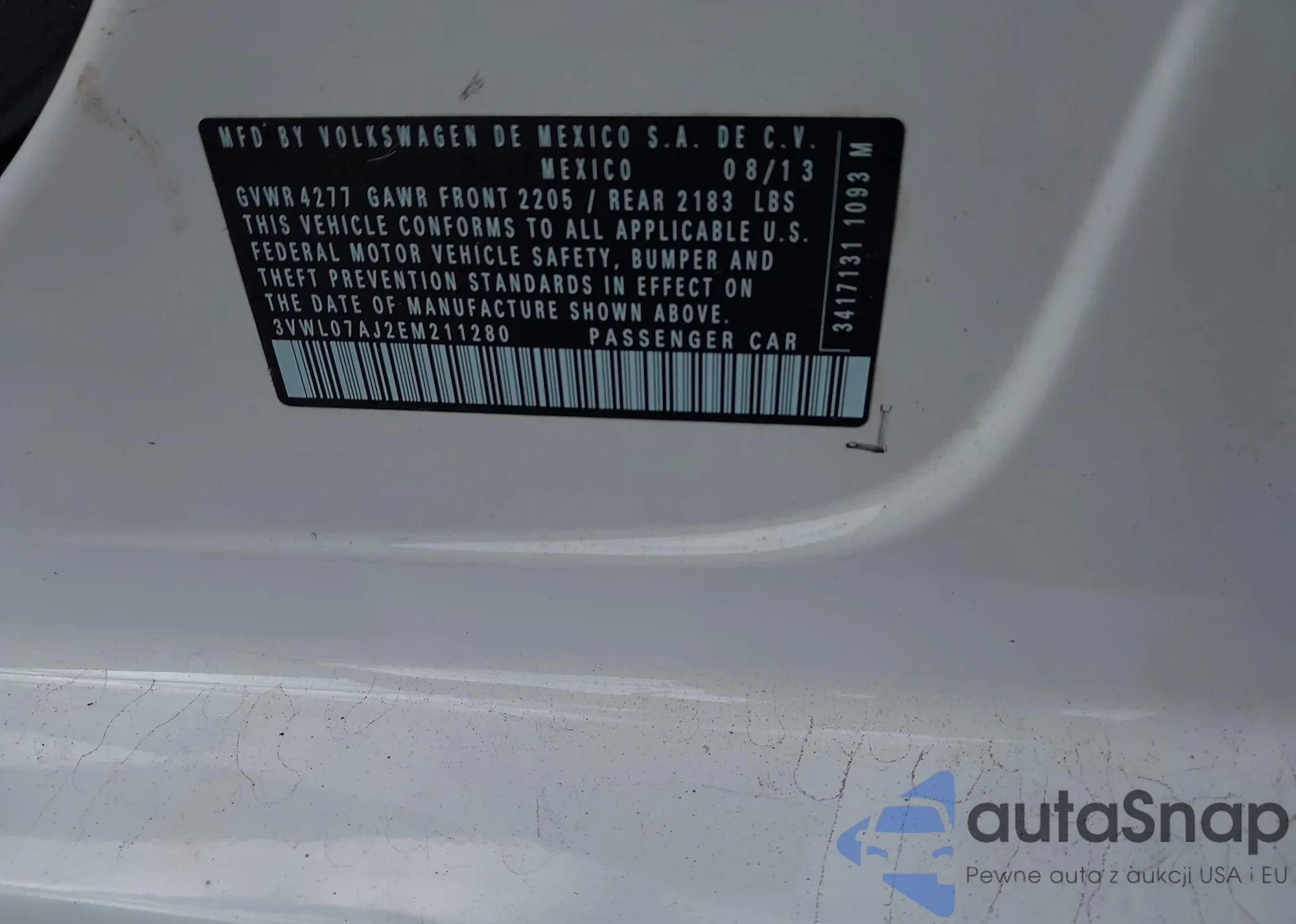 • VIN 3VWL07AJ2EM211280