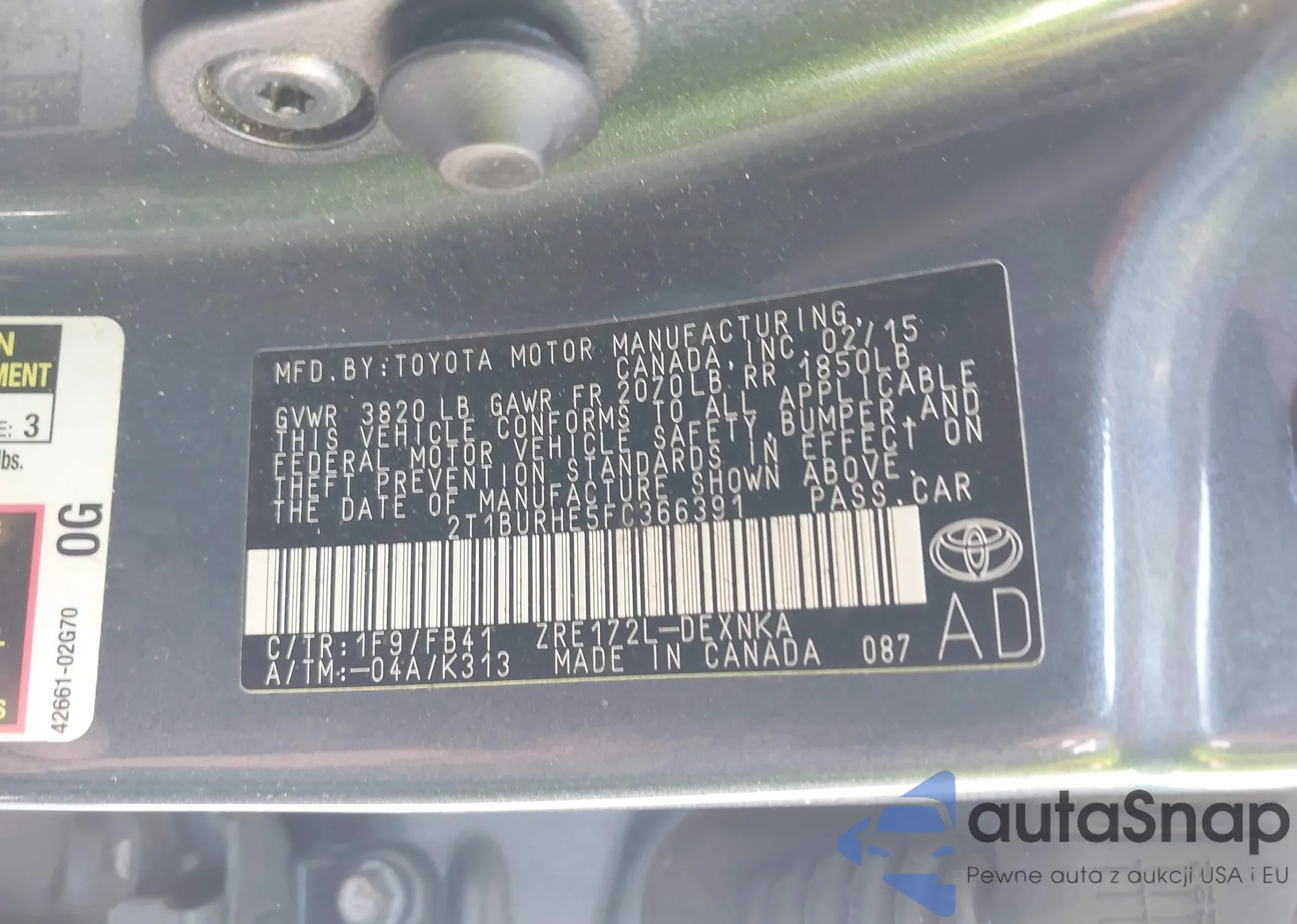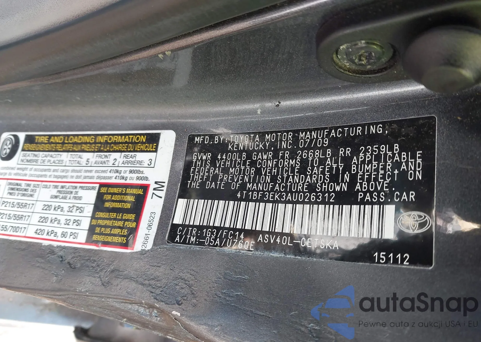 • VIN 4T1BF3EK3AU026312
