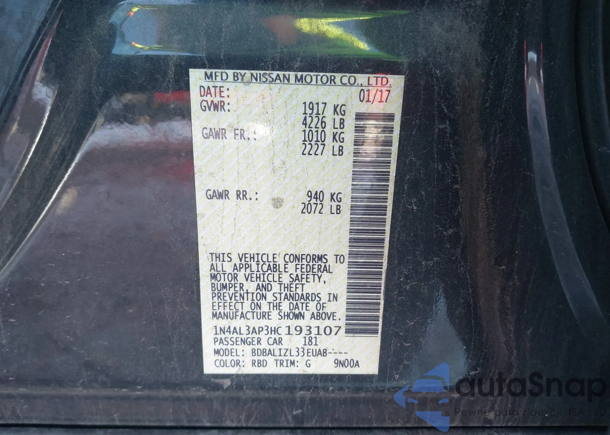 LOT: 43948787 VIN: 1N4AL3AP3HC193107