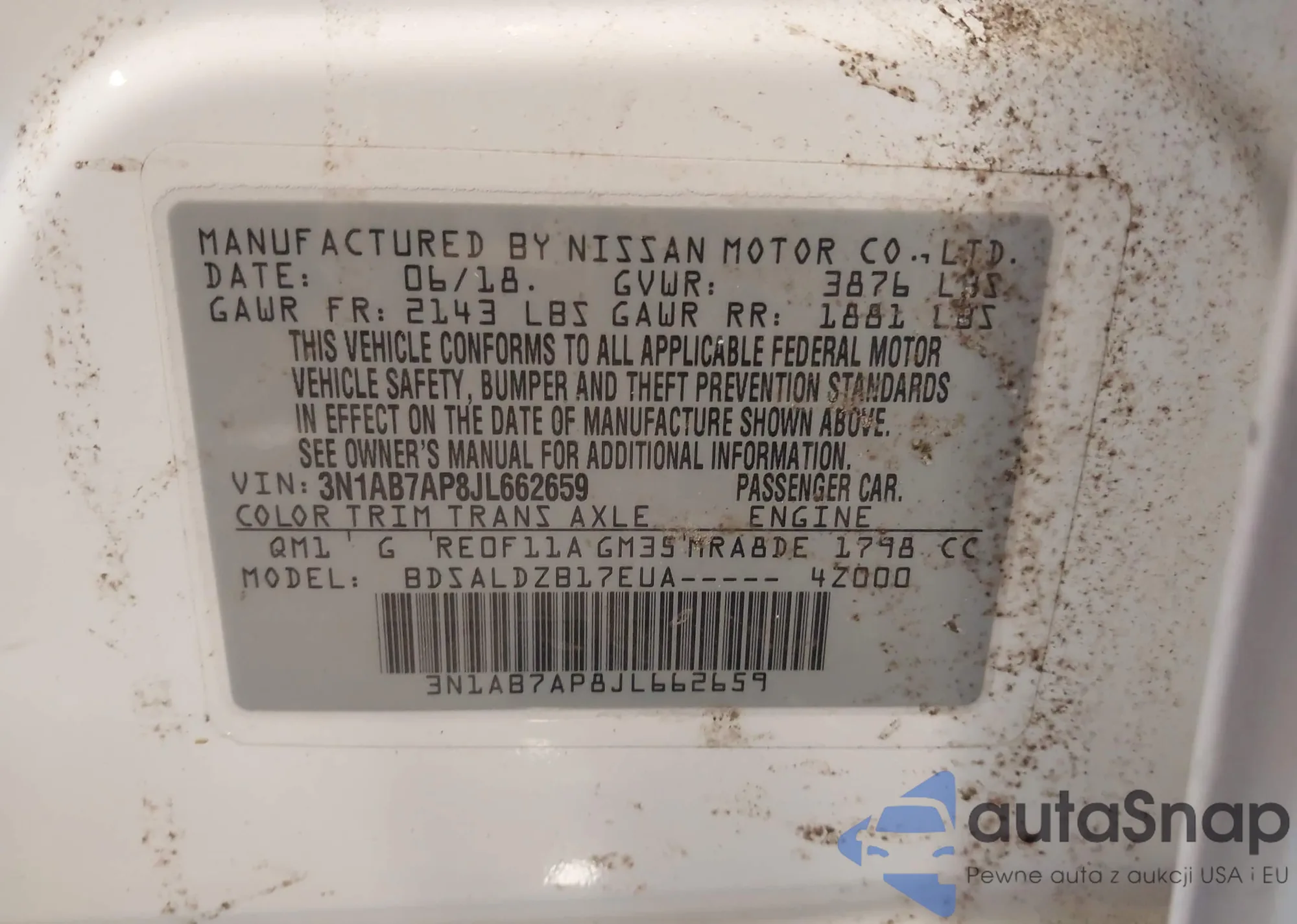 • VIN 3N1AB7AP8JL662659