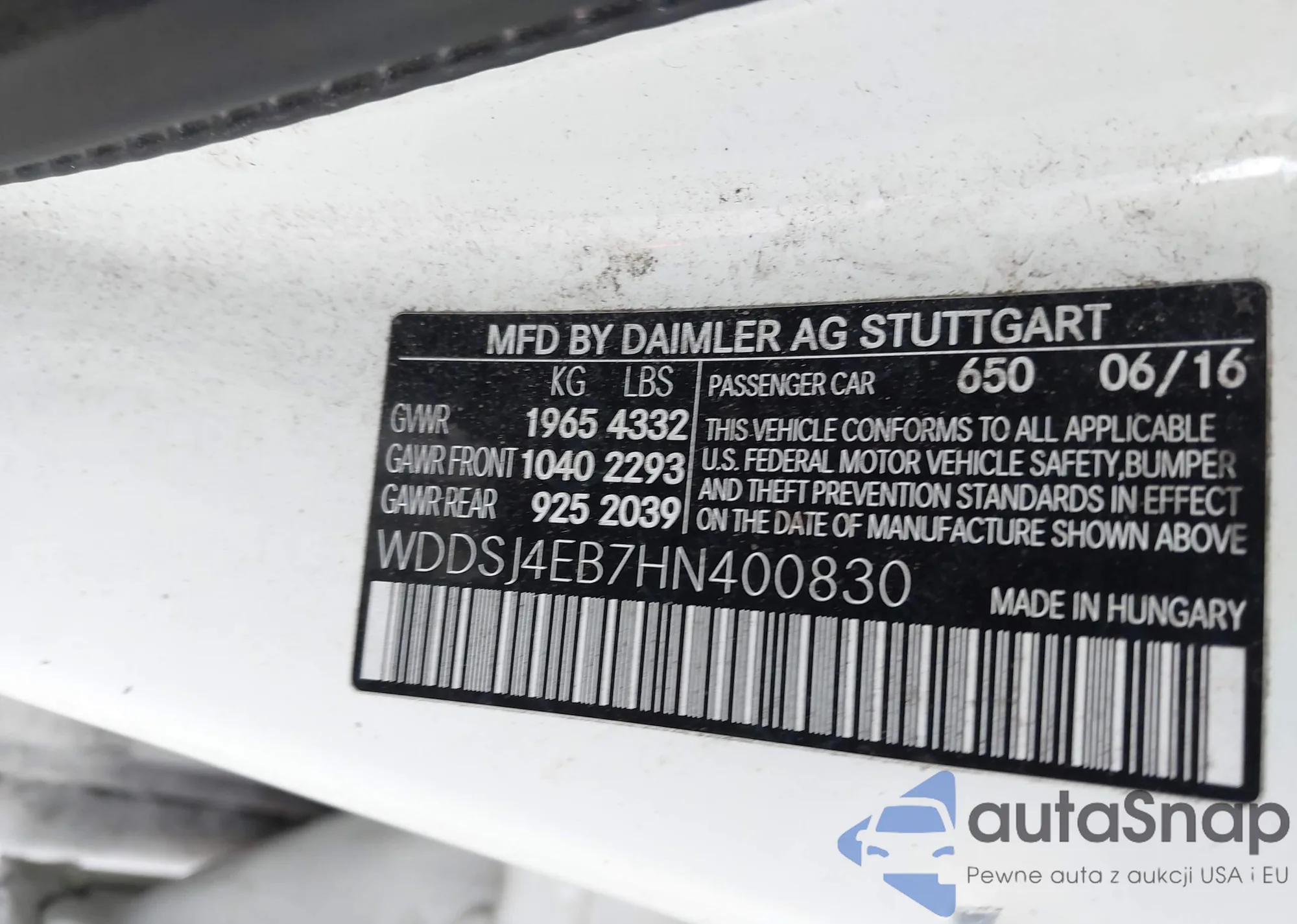 LOT: 43941633 VIN: 5NPEB4AC0DH619464