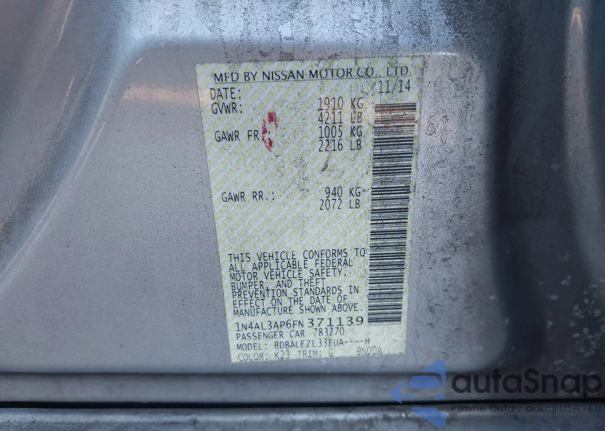 LOT: 44022235 VIN: 1N4AL3AP6FN371139