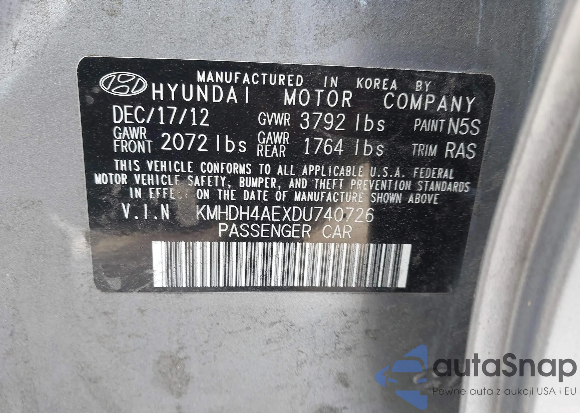 • VIN KMHDH4AEXDU740726