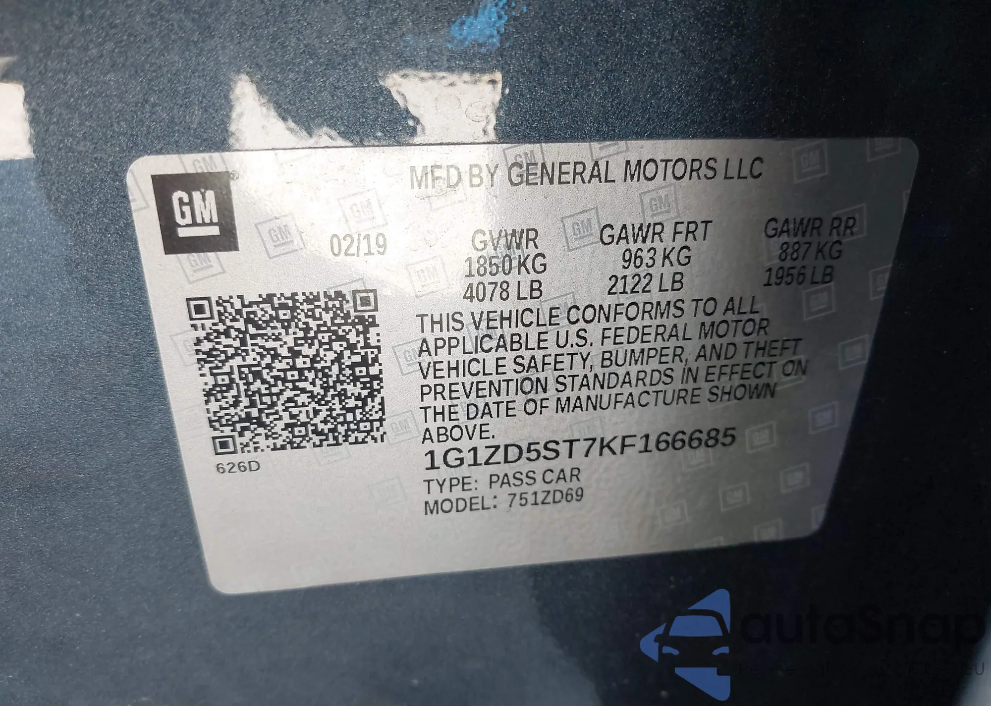 • VIN 1G1ZD5ST7KF166685
