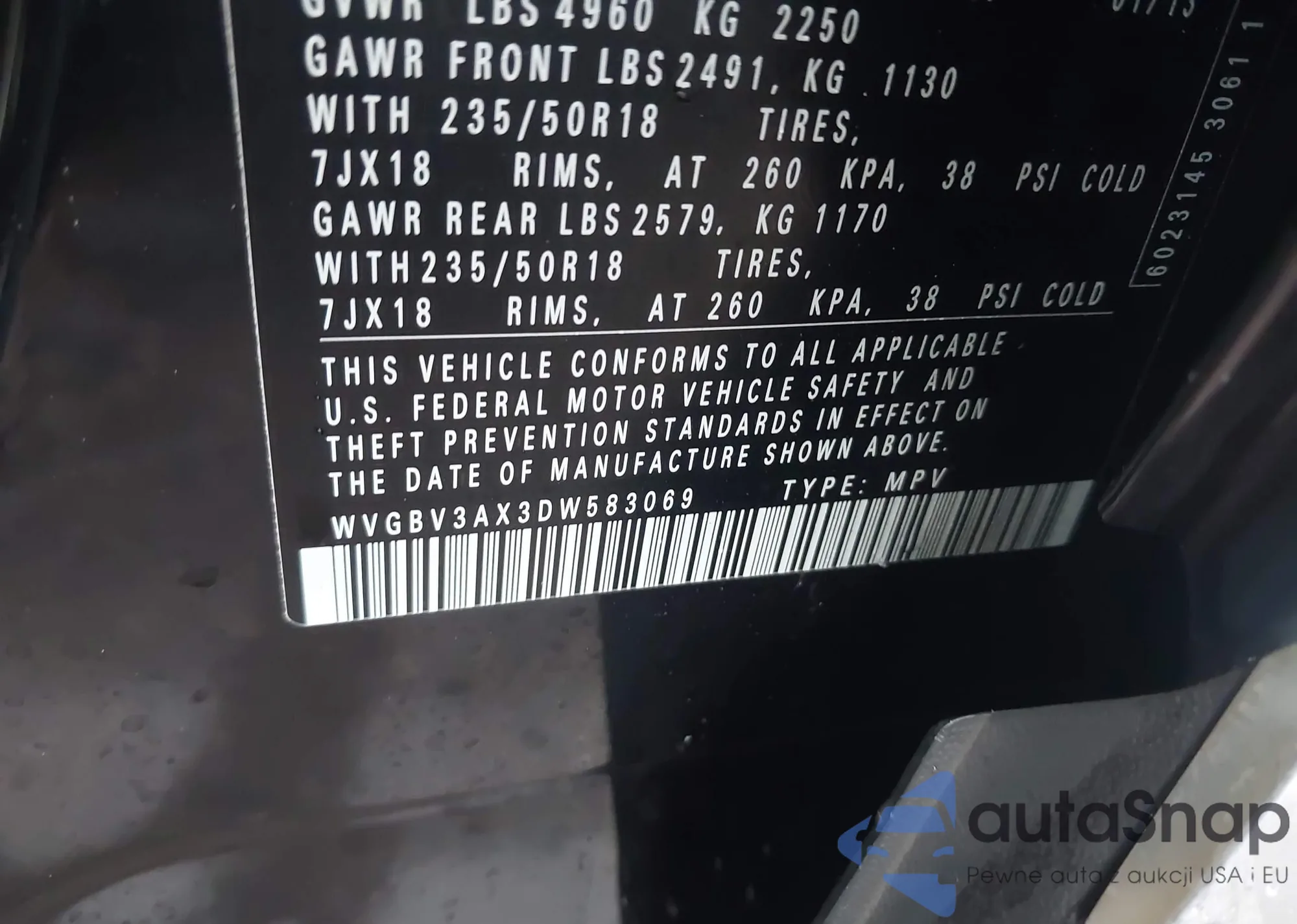 • VIN WVGBV3AX3DW583069