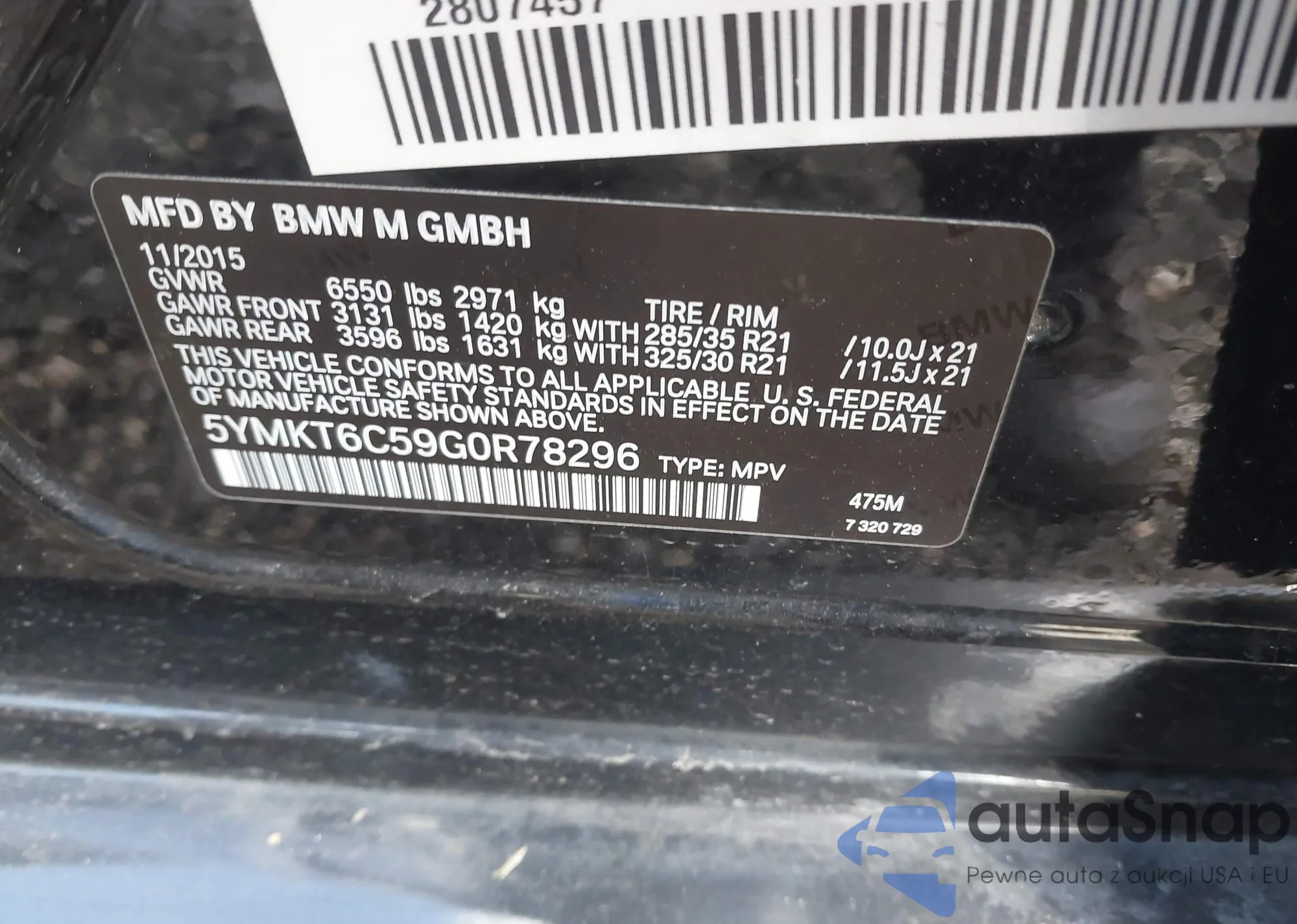 • VIN 5YMKT6C59G0R78296