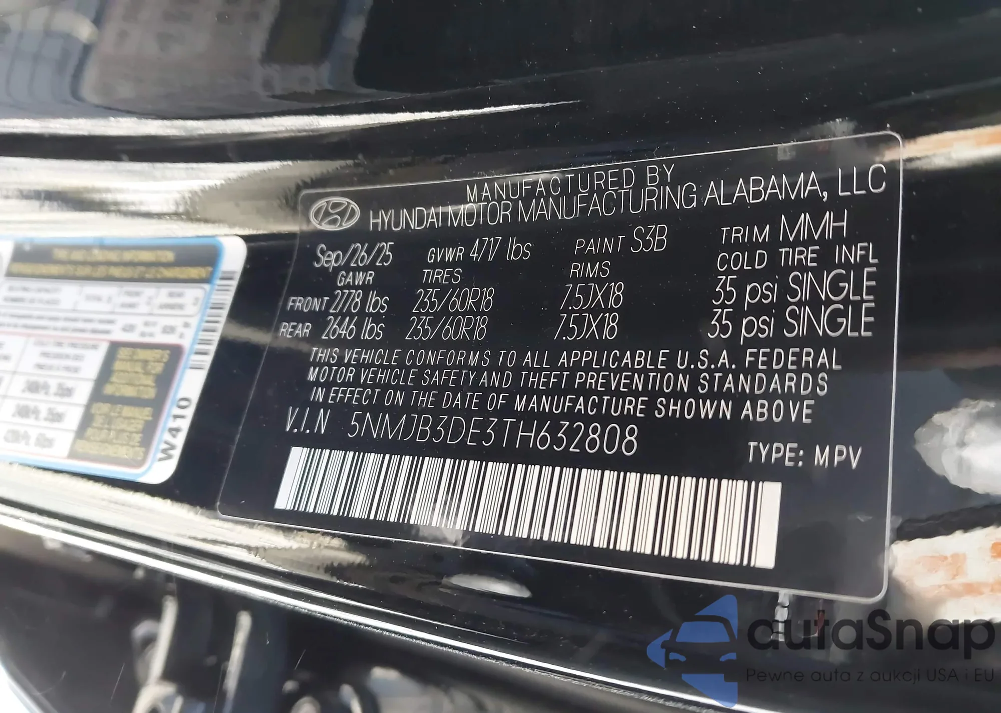 • VIN 5NMJB3DE3TH632808
