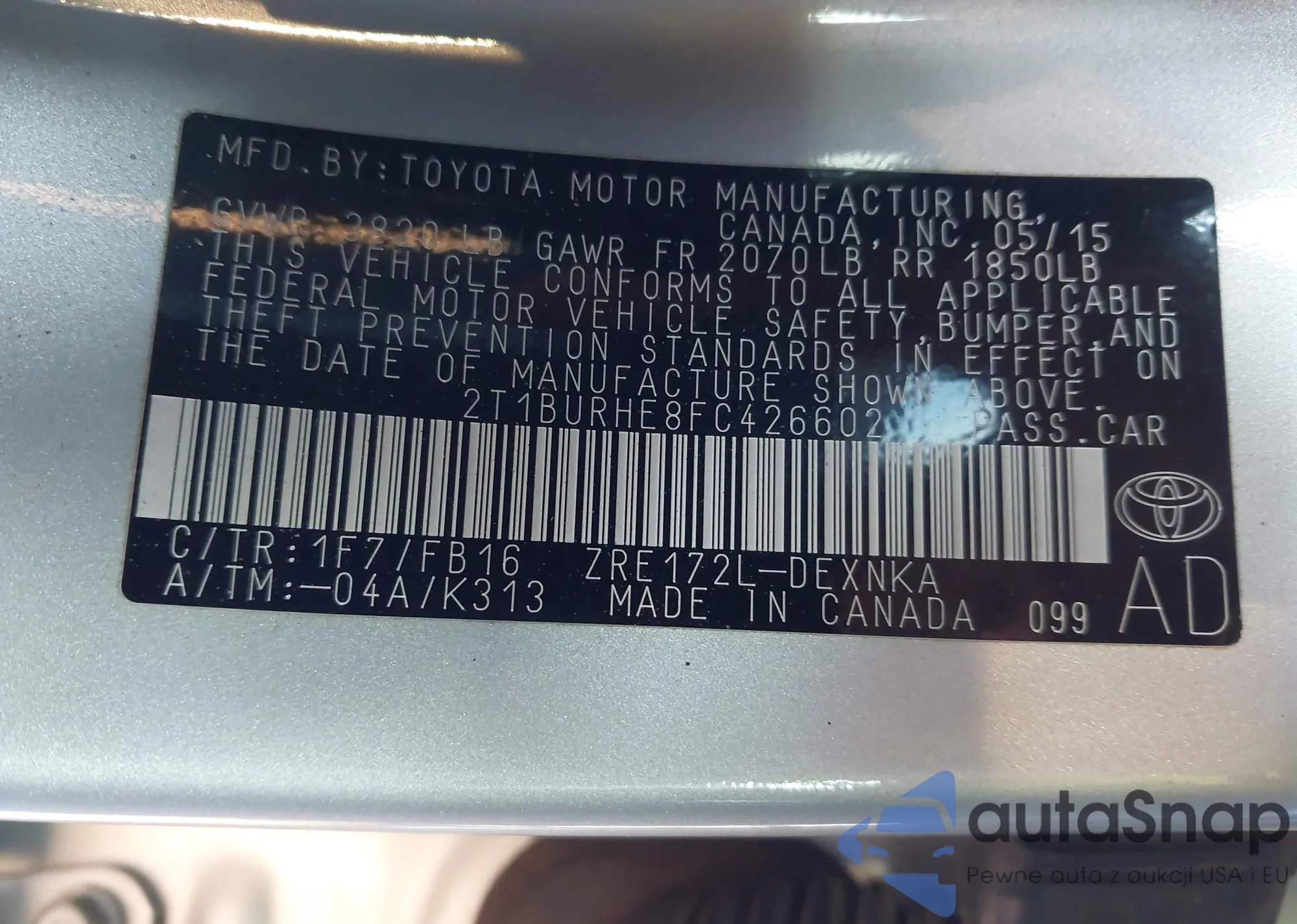 LOT: 43801777 VIN: 2T1BURHE8FC426602