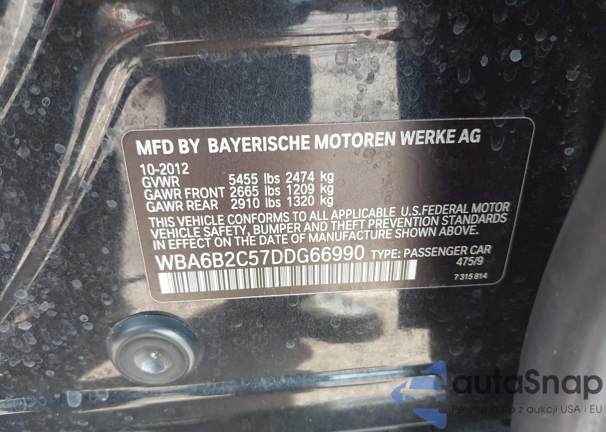 • VIN WBA6B2C57DDG66990