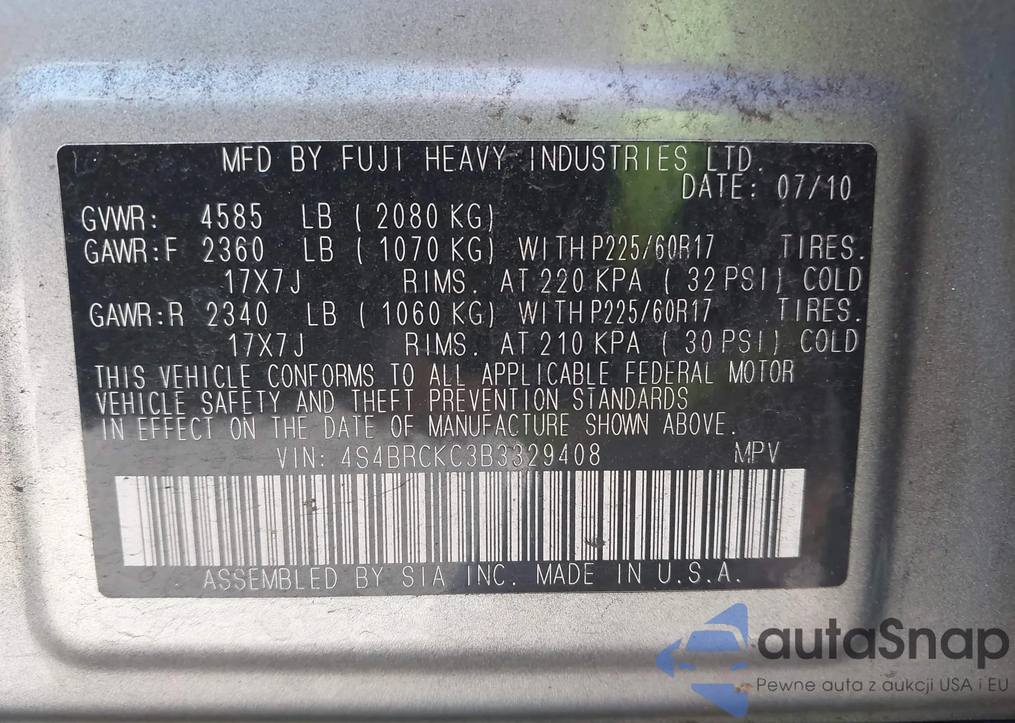 • VIN 5J8TB3H3XHL008951