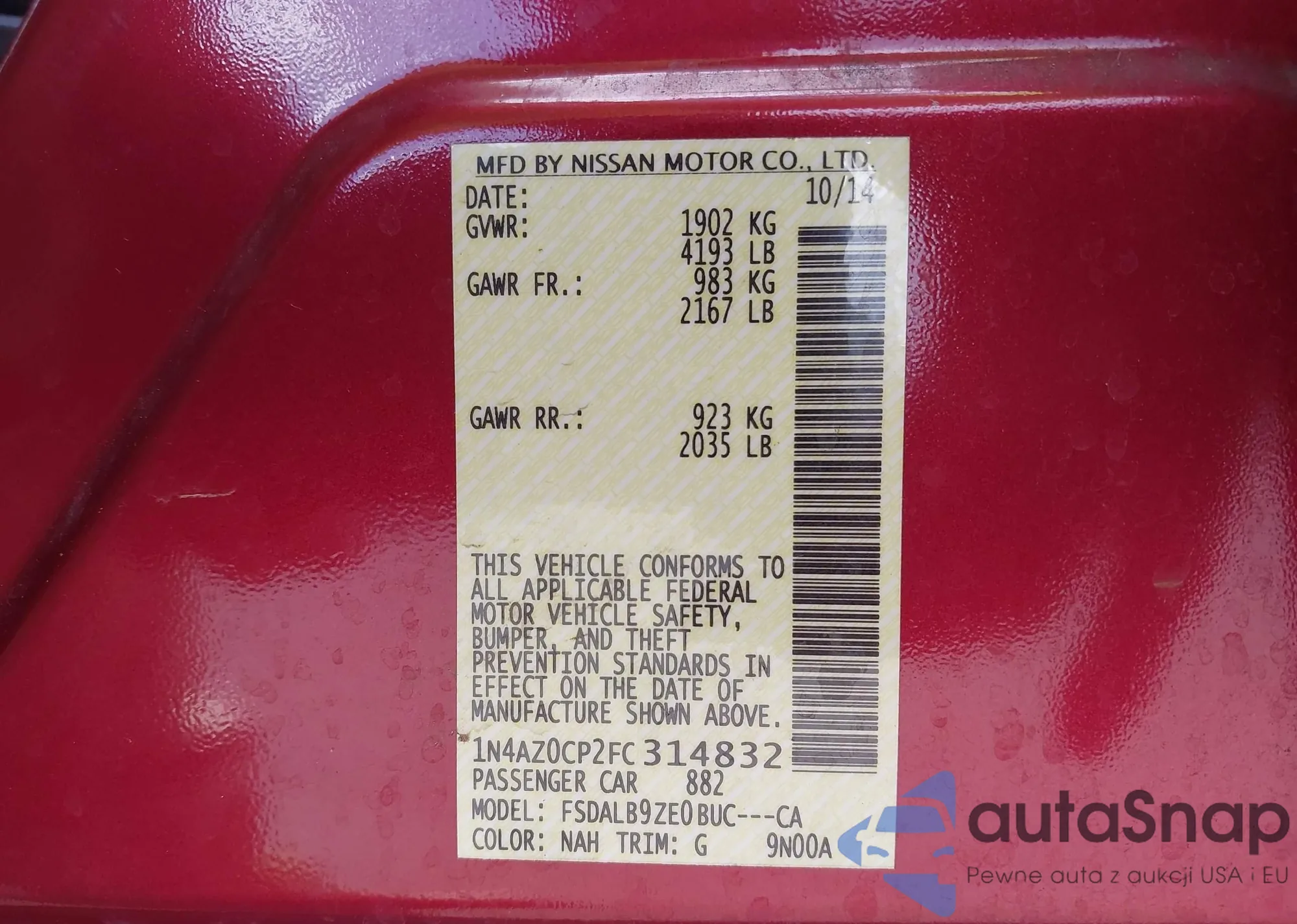 LOT: 44029887 VIN: 1N4AZ0CP2FC314832