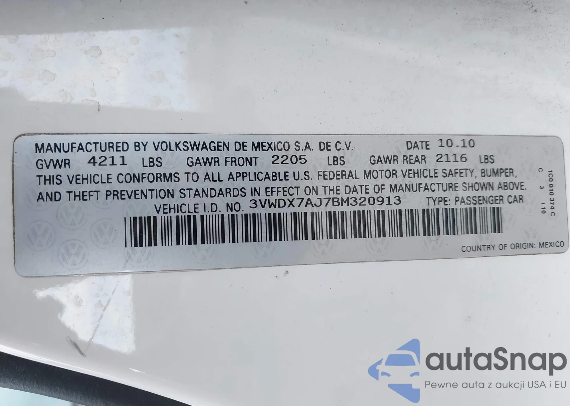 • VIN WVGAV7AX3FW605755