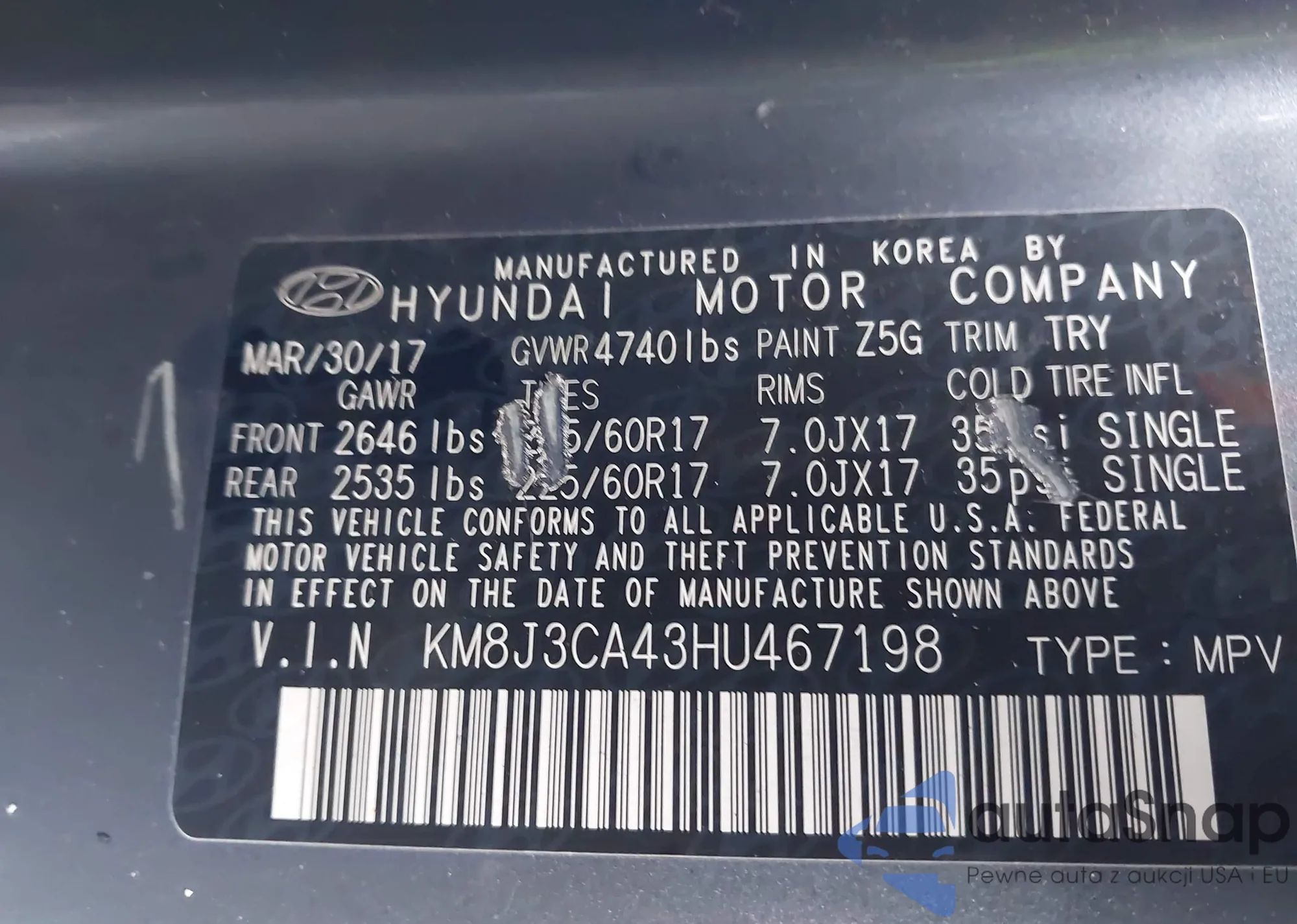 • VIN KM8R5DHE9LU067608
