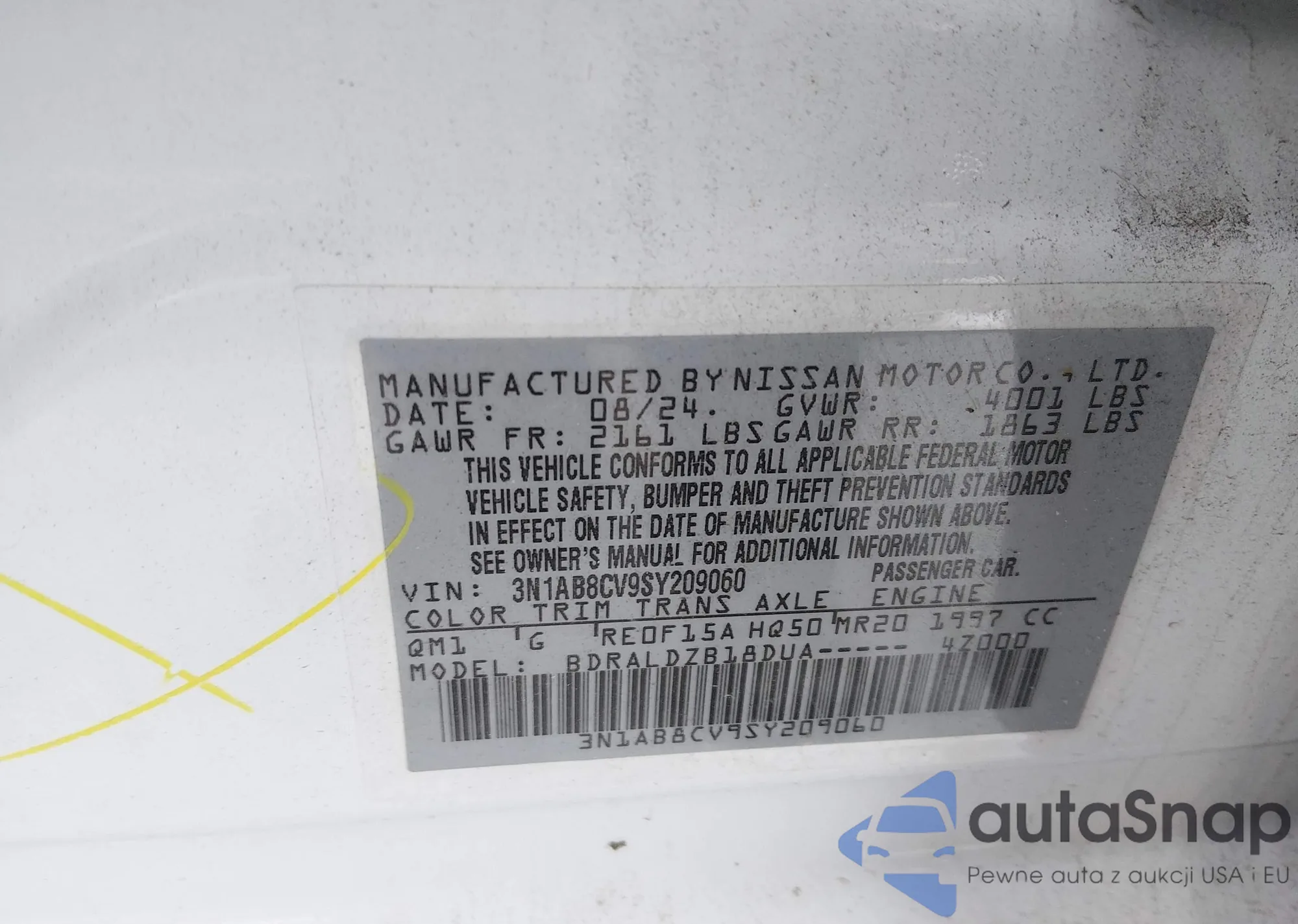 • VIN 3N1AB8CV9SY209060