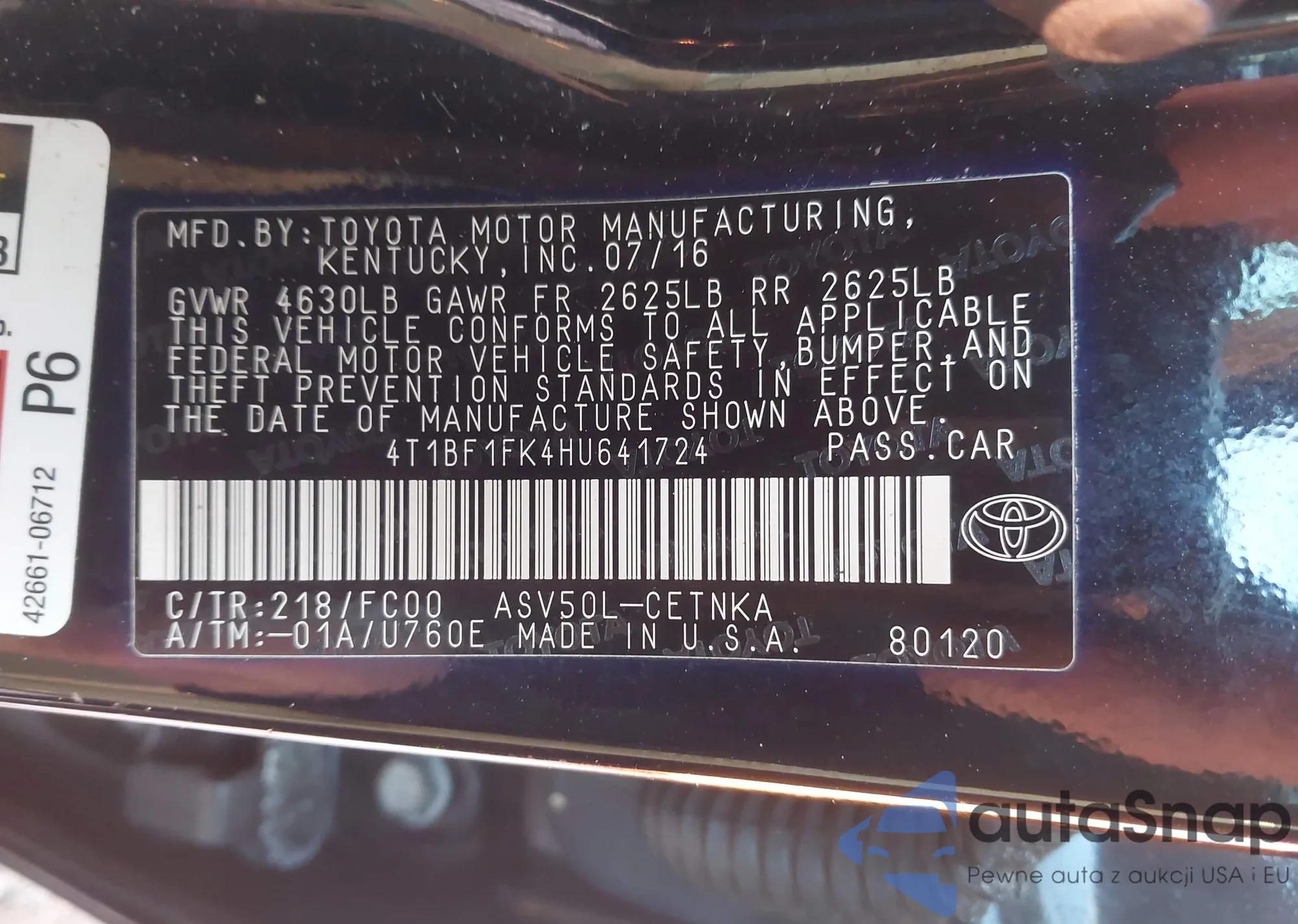• VIN 4T1BF1FK4HU641724
