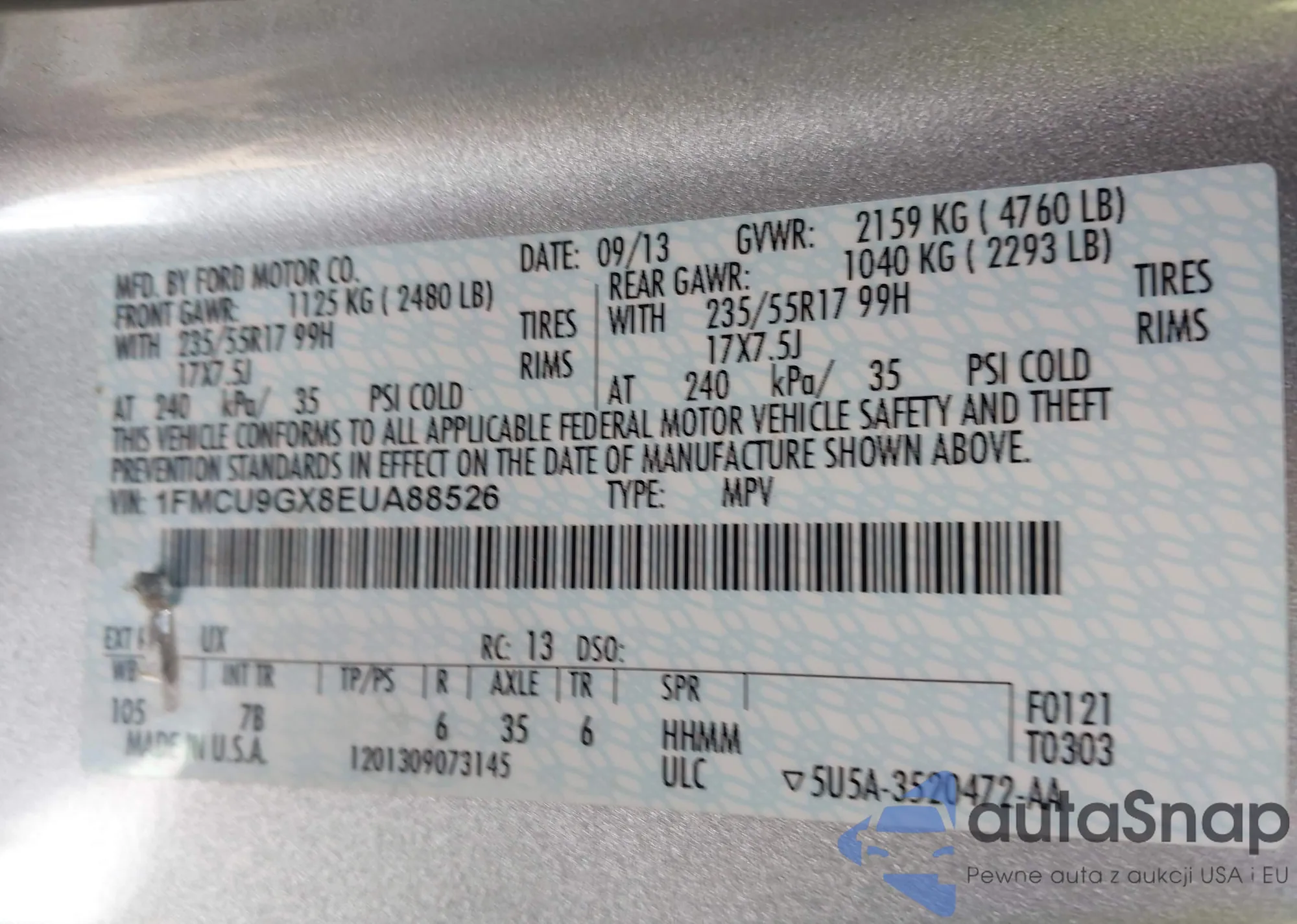 LOT: 44203310 VIN: 1FMCU9GX8EUA88526