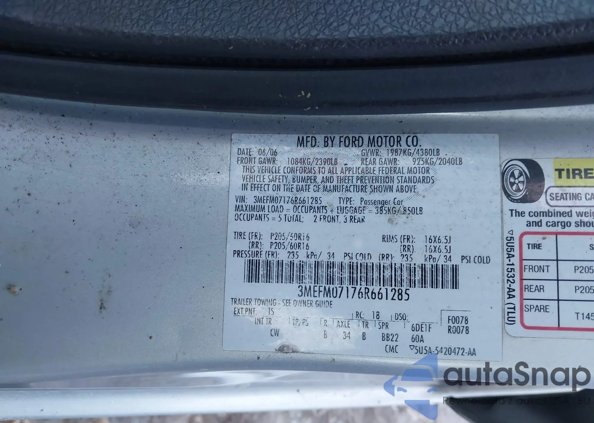 LOT: 43931287 VIN: 3MEFM07176R661285