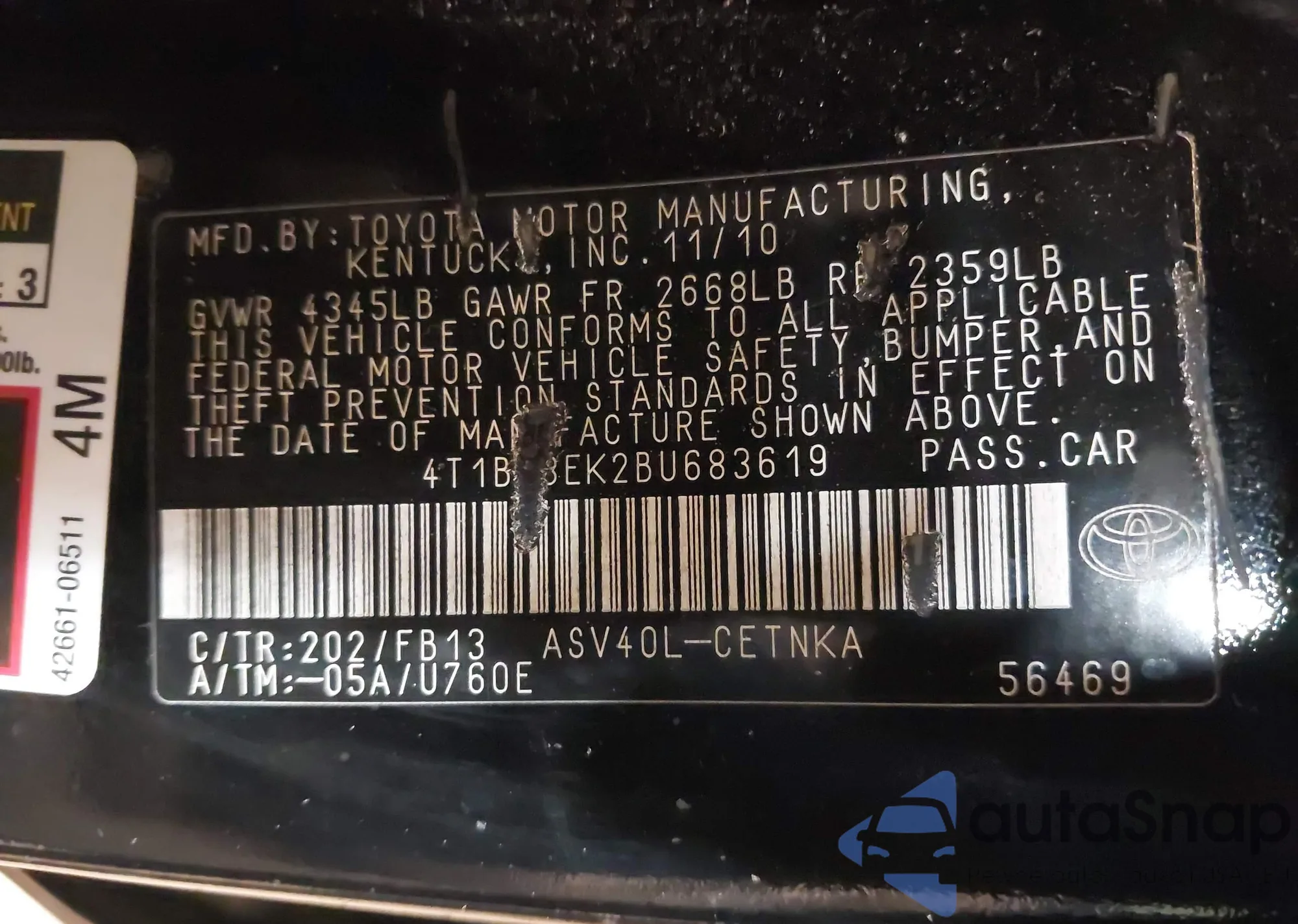 LOT: 43983744 VIN: 4T1BK36B16U132484