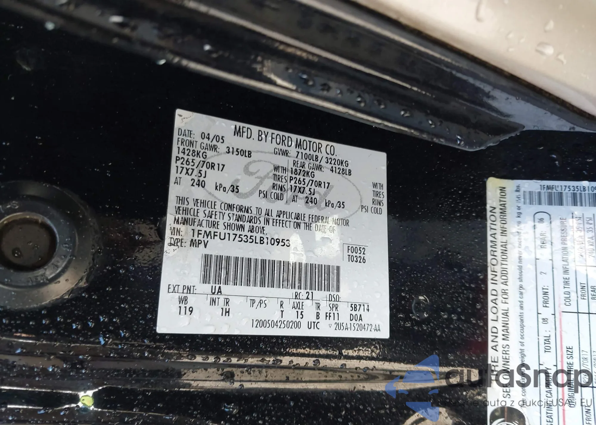 LOT: 44133682 VIN: 1FMFU17535LB10953