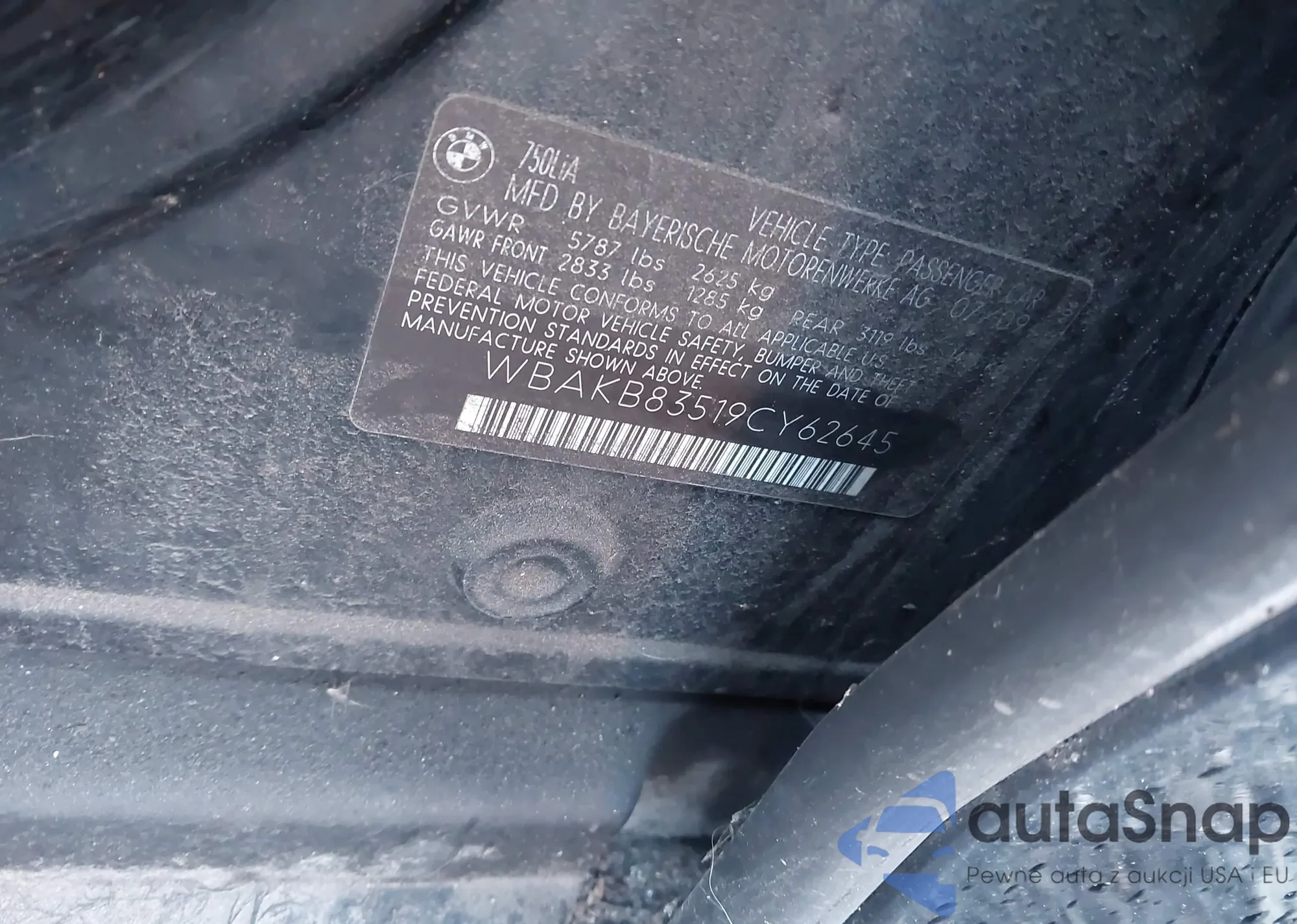 2009 BMW 750Li z USA, uszkodzony, nr VIN WBAKB83519CY62645