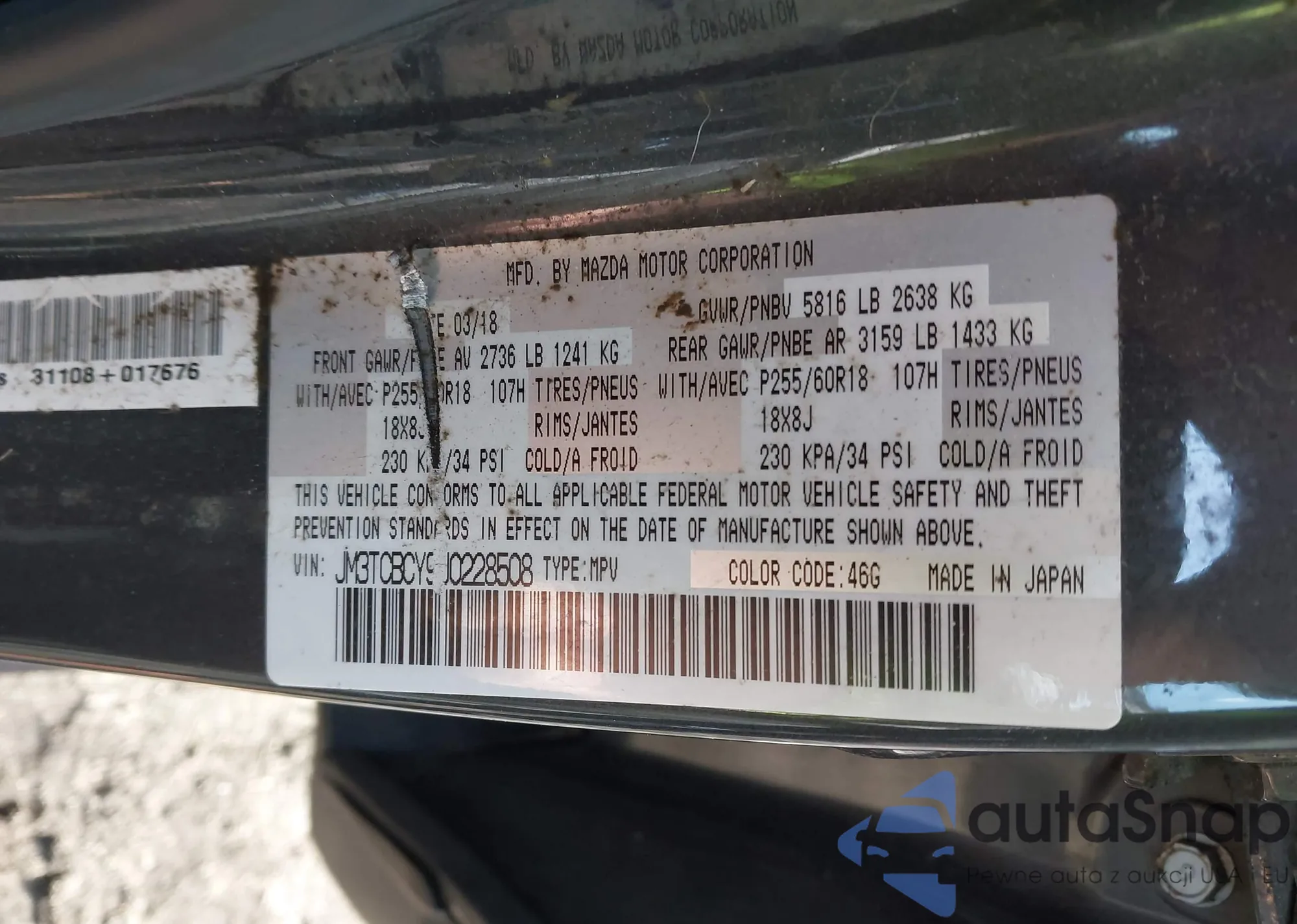 LOT: 43750354 VIN: JM3TCBCY9J0228508