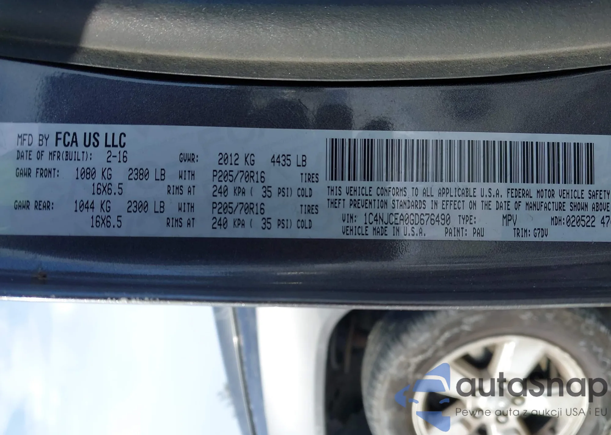 • VIN 1C4NJCEA0GD676490