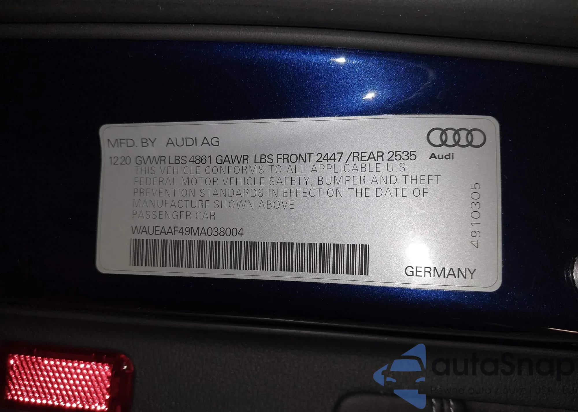 • VIN WAUSFAFL4BA046519