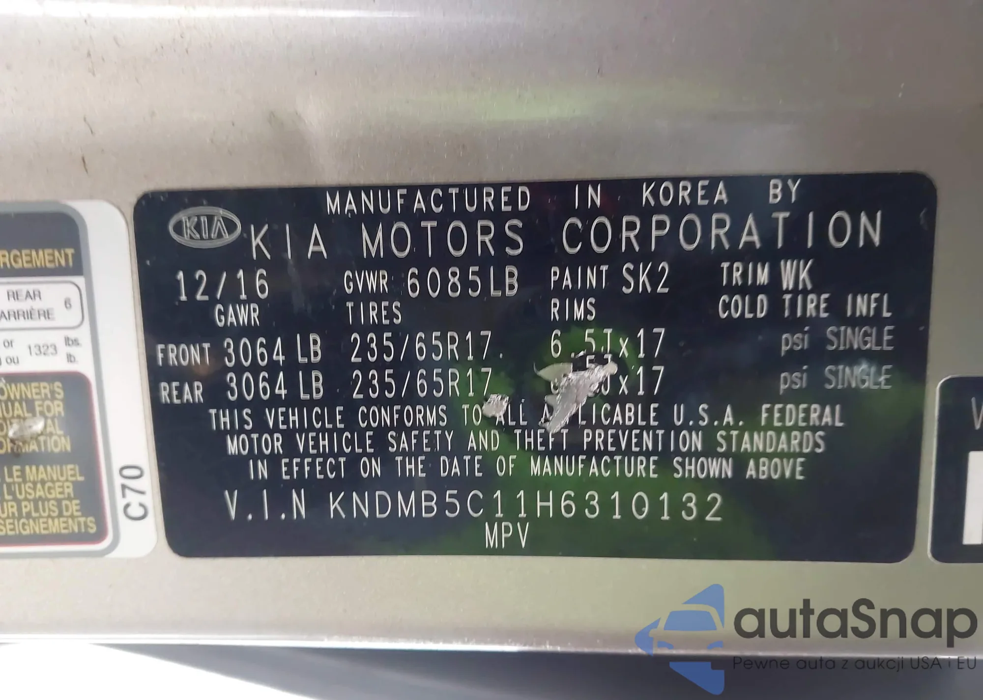 • VIN 1FMCU0EG7BKC17216