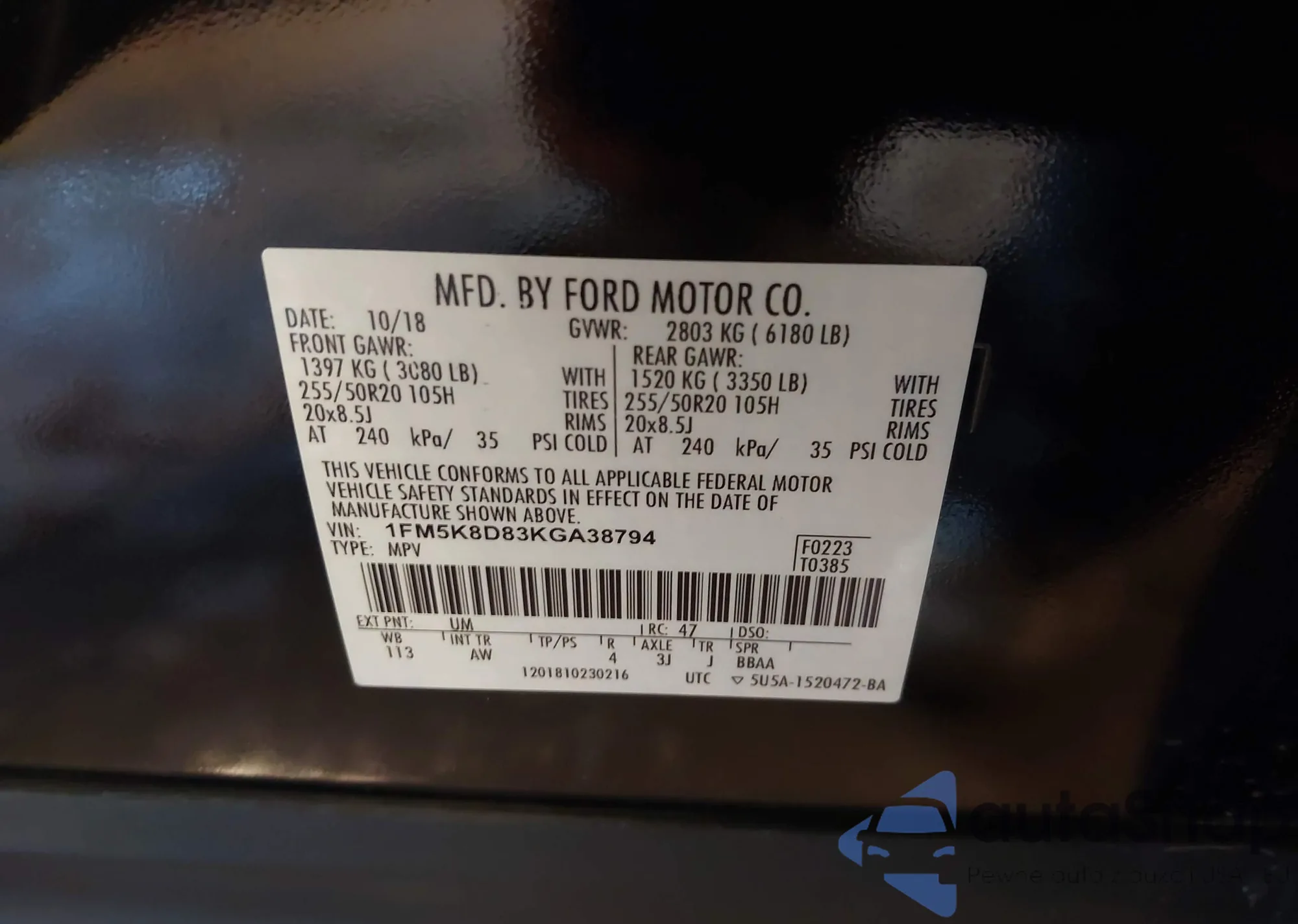 • VIN 1FM5K8D83KGA38794