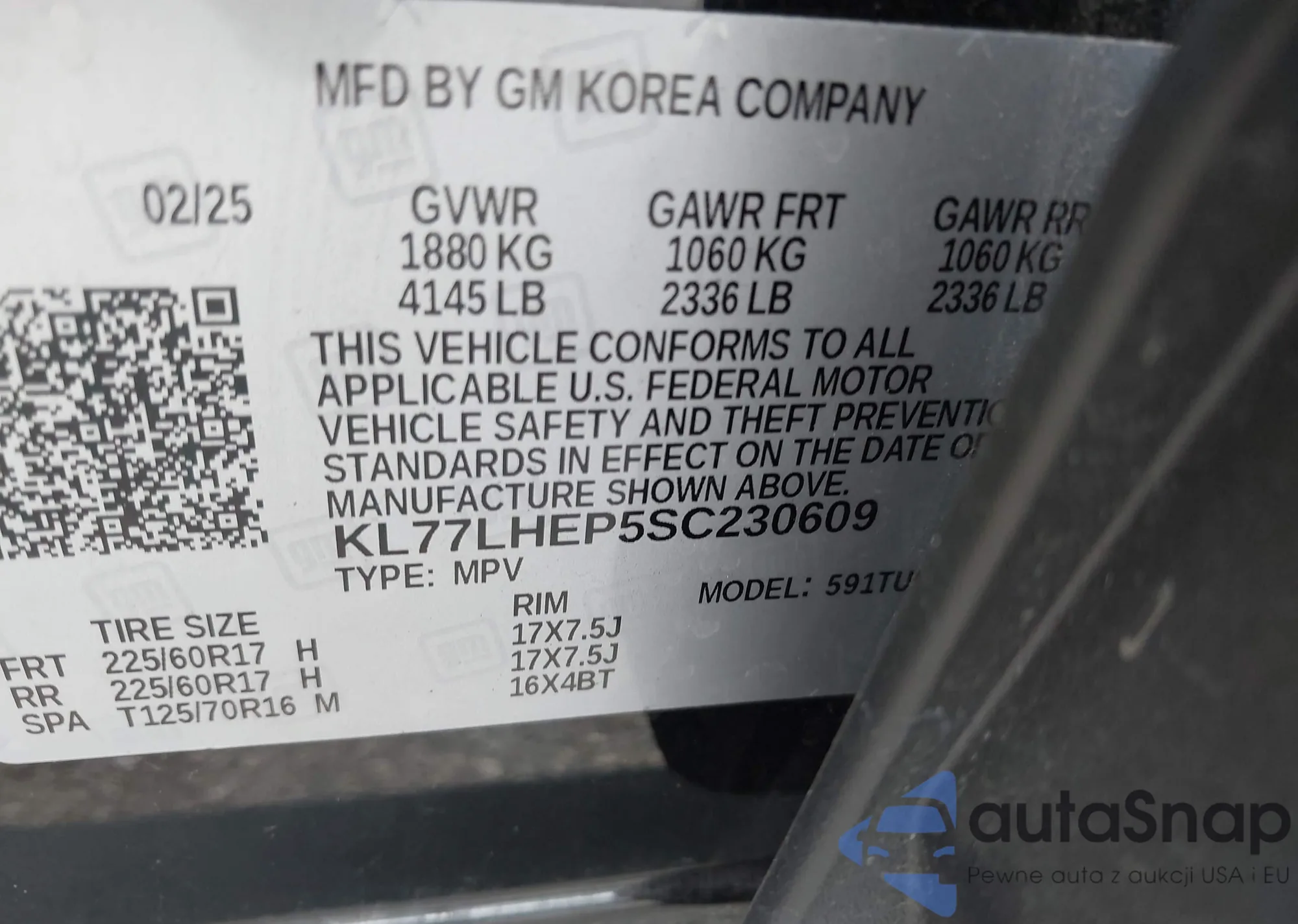 LOT: 44220050 VIN: KL77LHEP5SC230609