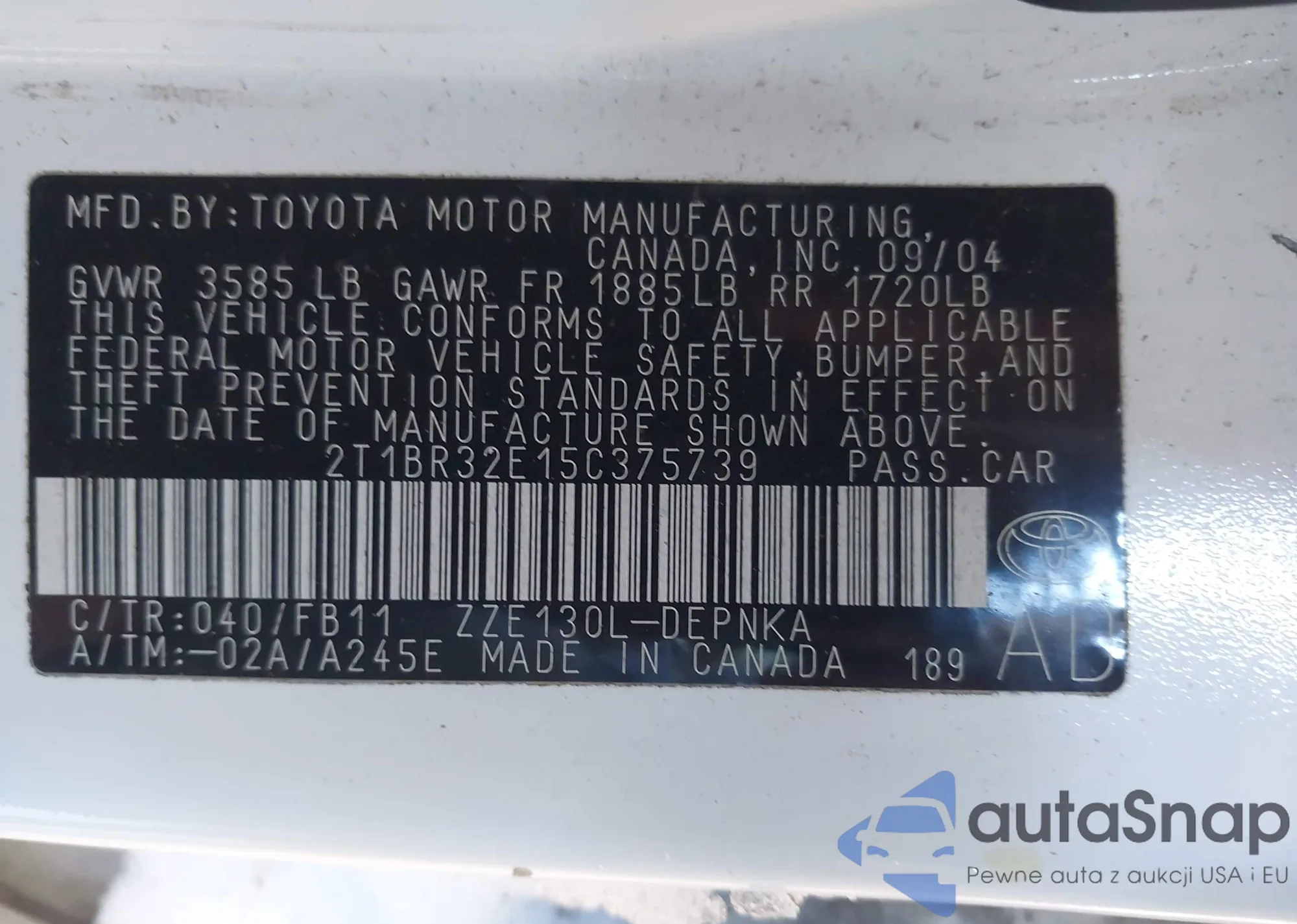 • VIN 2T1BR32E15C375739