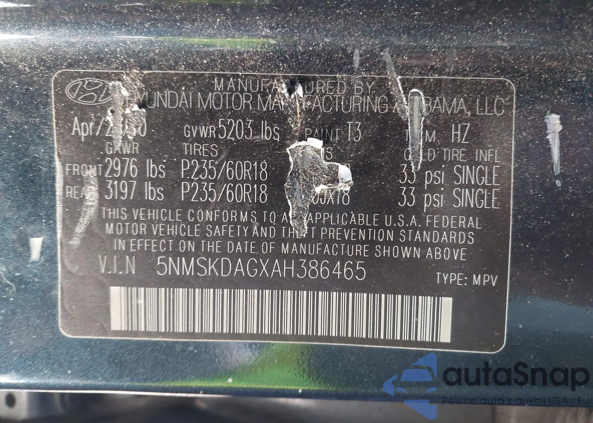 • VIN 5NMSKDAGXAH386465