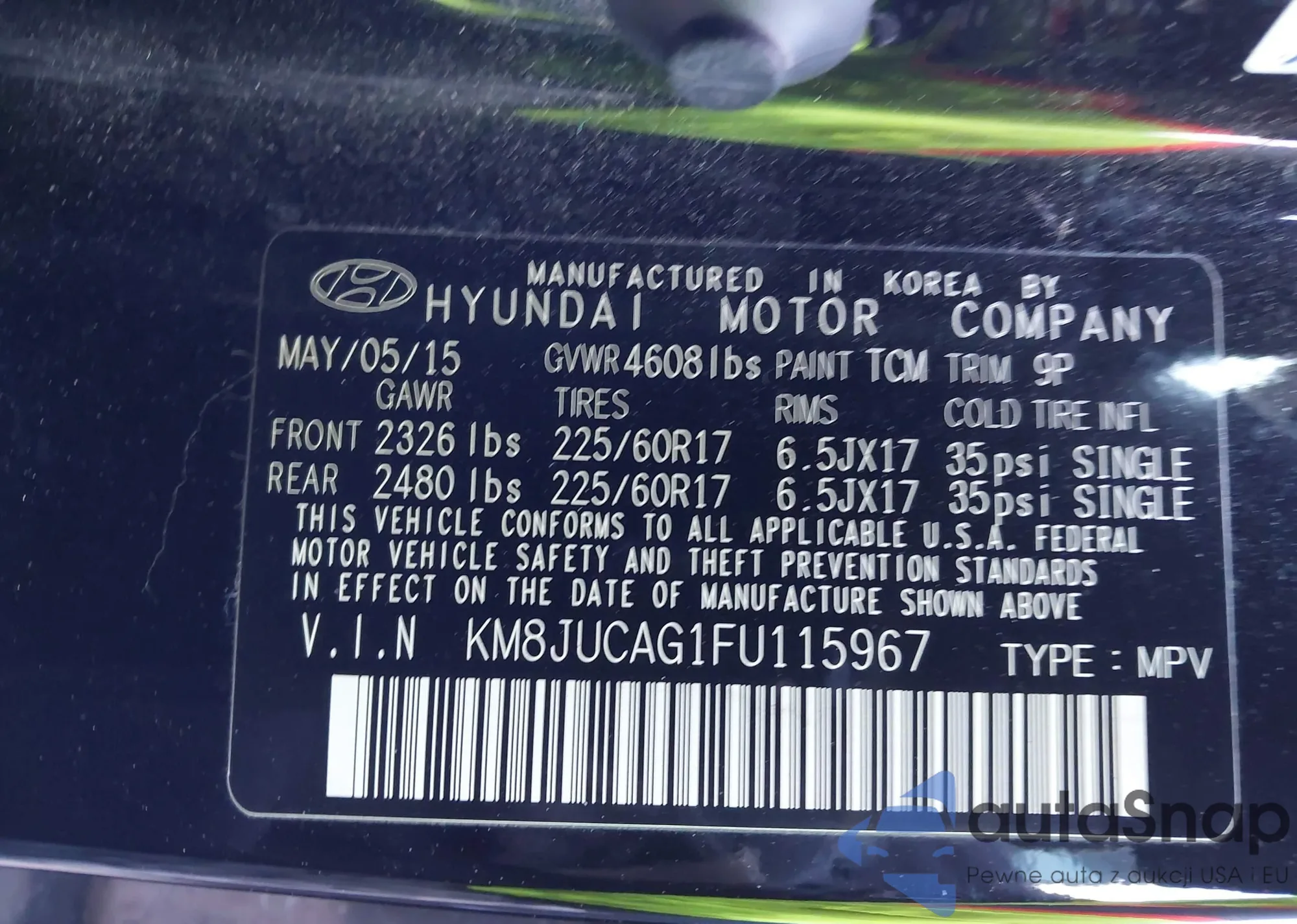 • VIN KM8JUCAG1FU115967