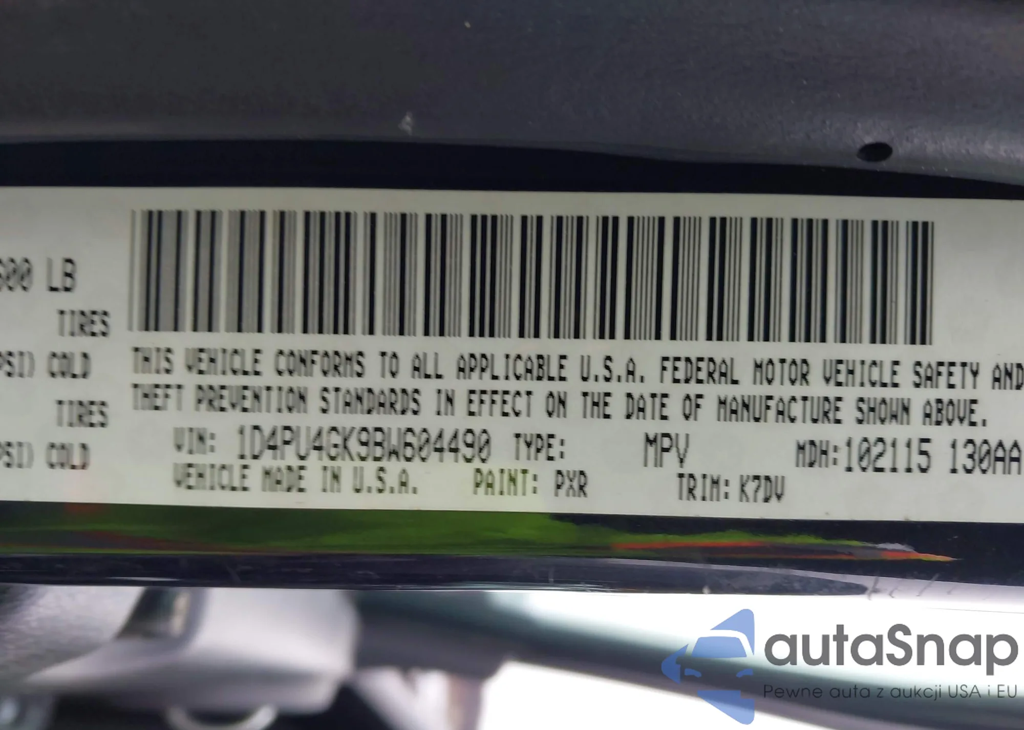 • VIN 1D4PU4GK9BW604490
