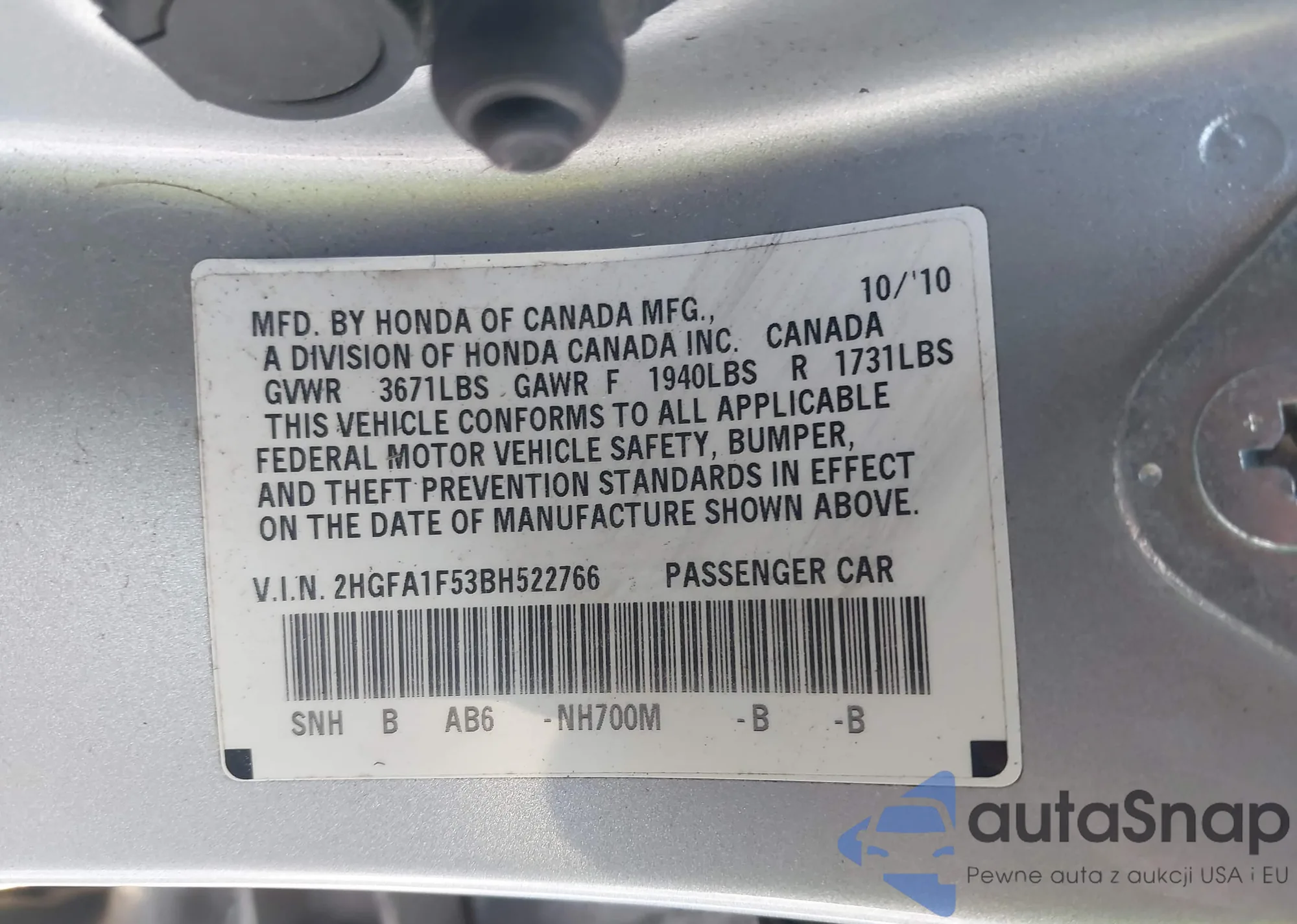 • VIN 1HGCV1F3XNA061039