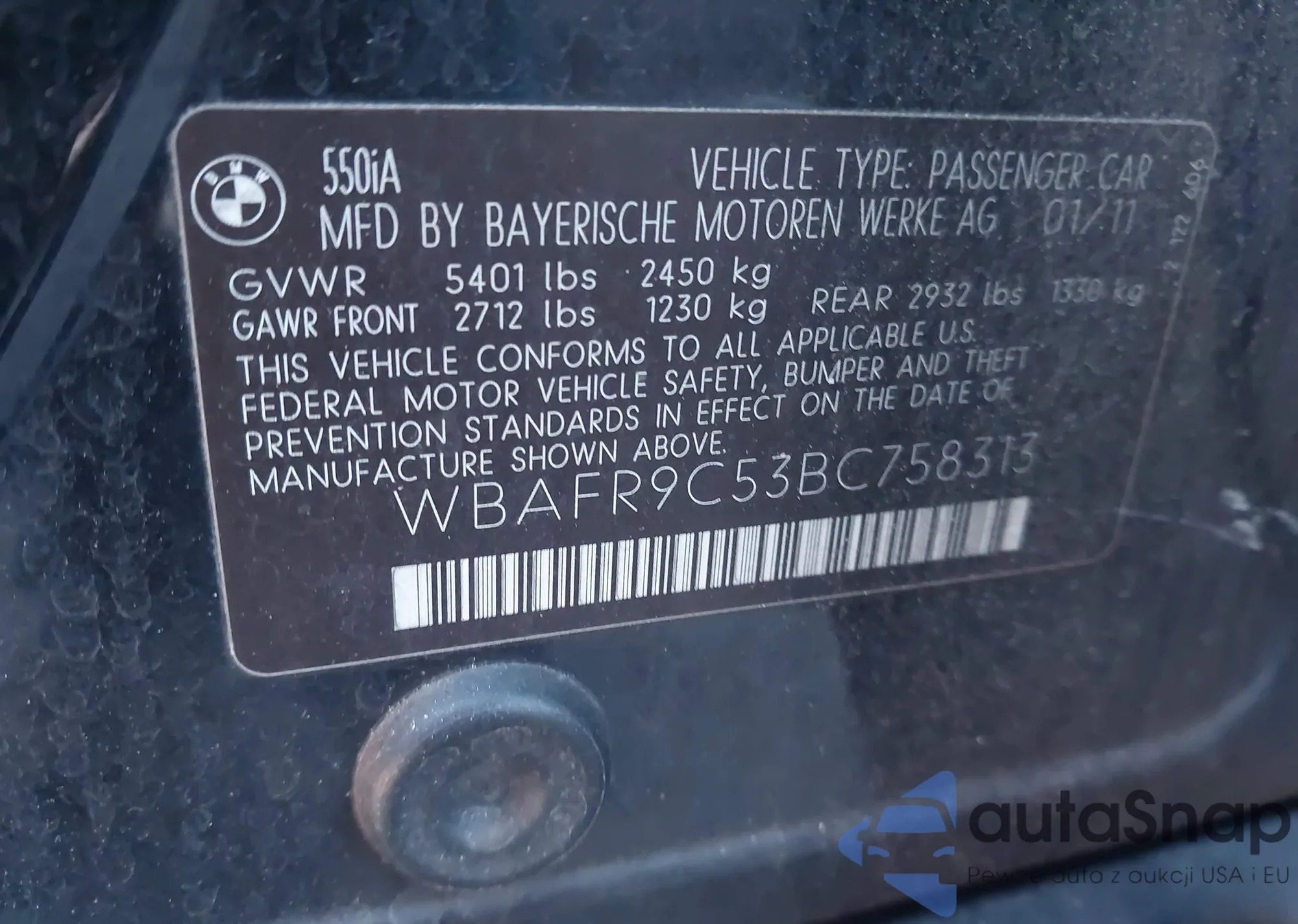 • VIN WBAFR9C53BC758313