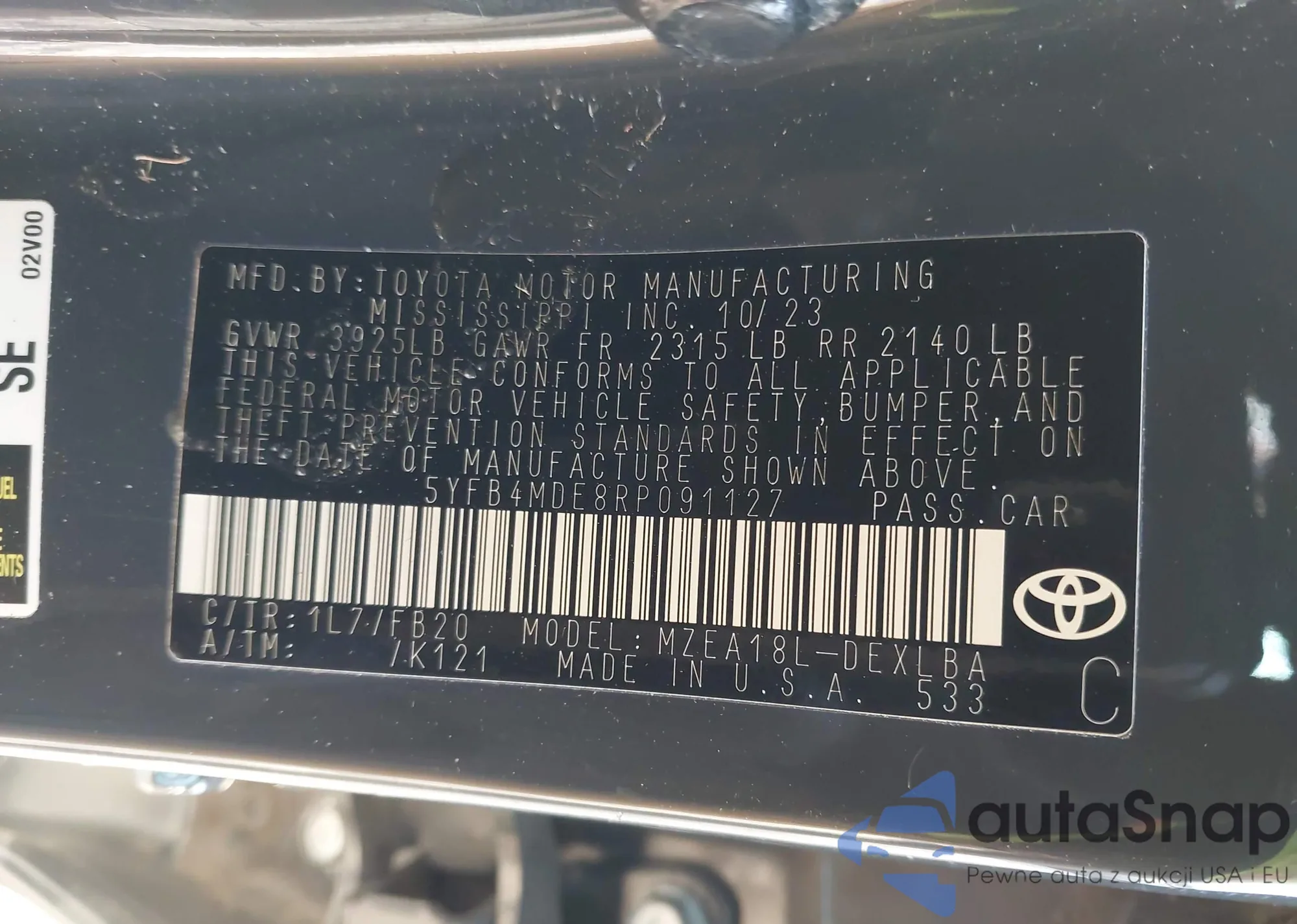 LOT: 44249440 VIN: 1NXBR32E63Z031643