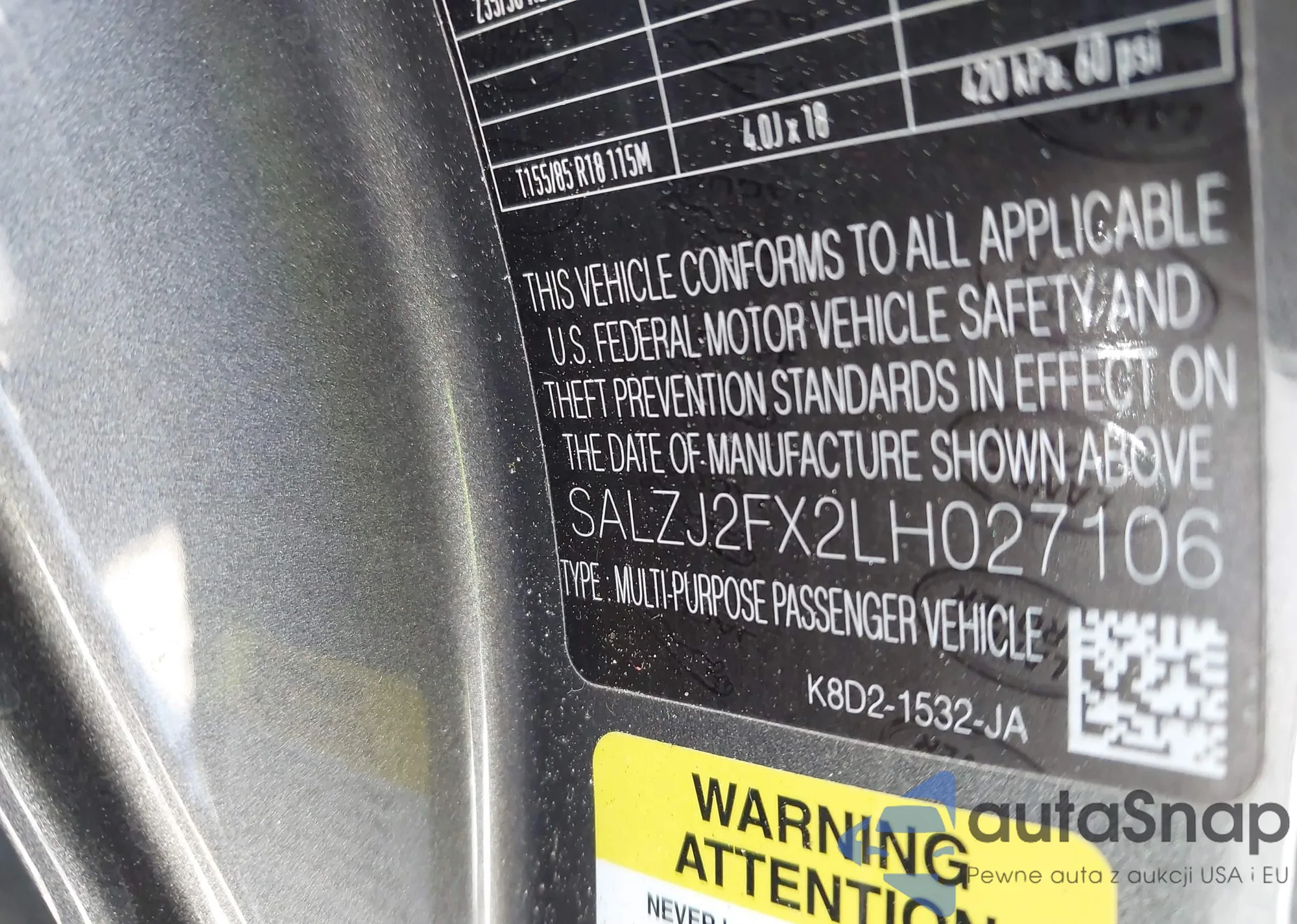 • VIN SALZJ2FX2LH027106