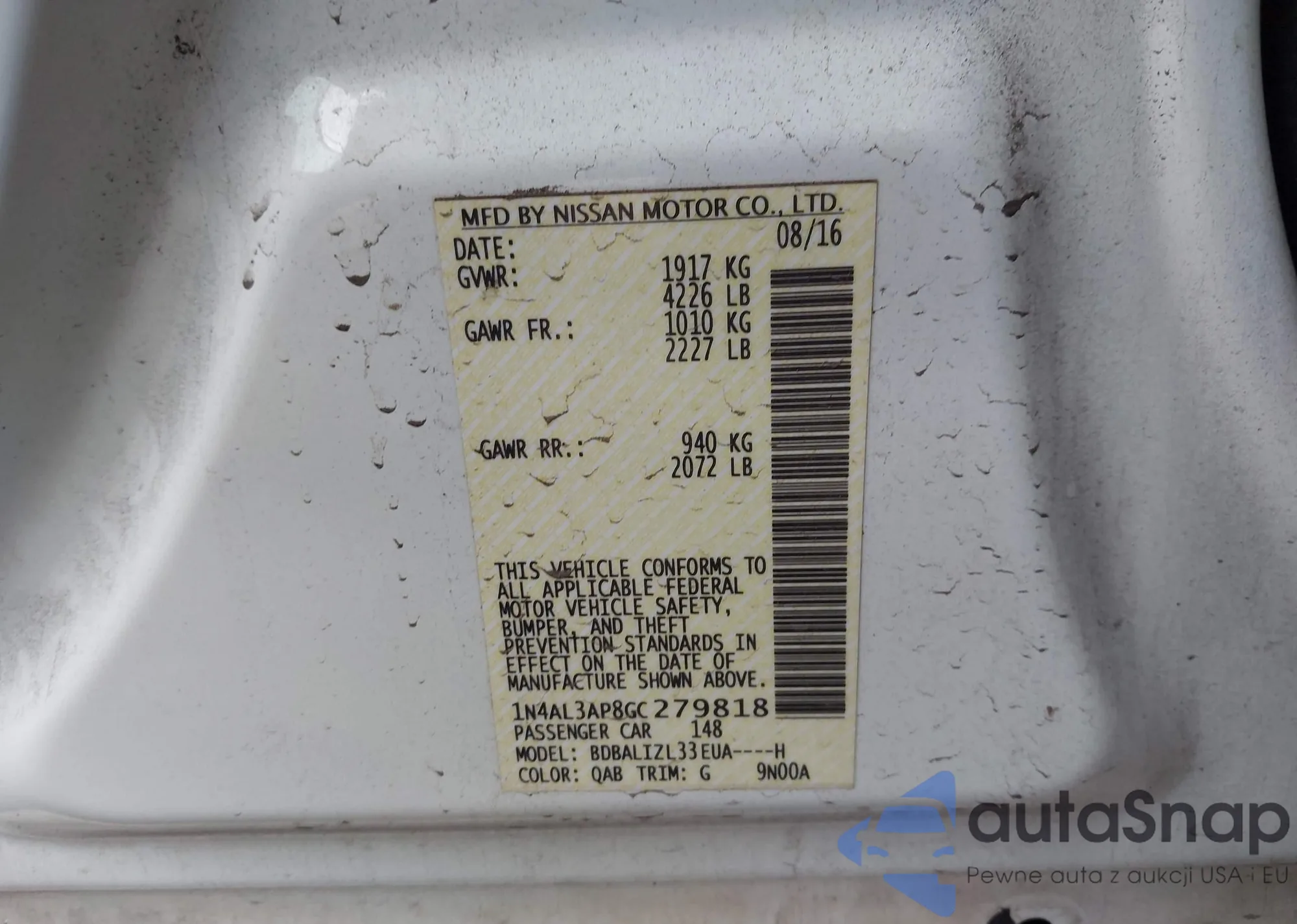 • VIN 1N4AL3AP8GC279818