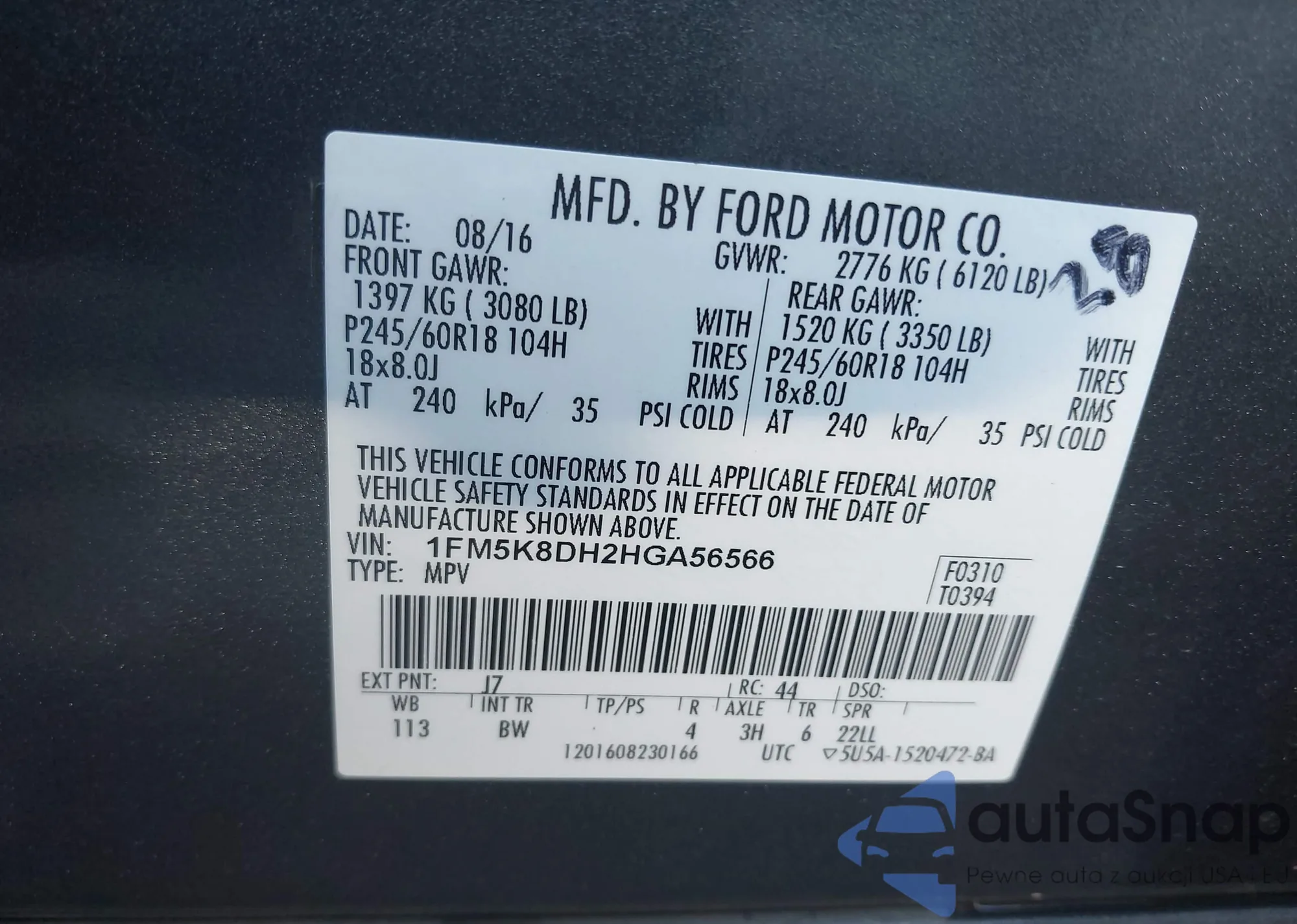 • VIN 2FMPK4K96FBB31819