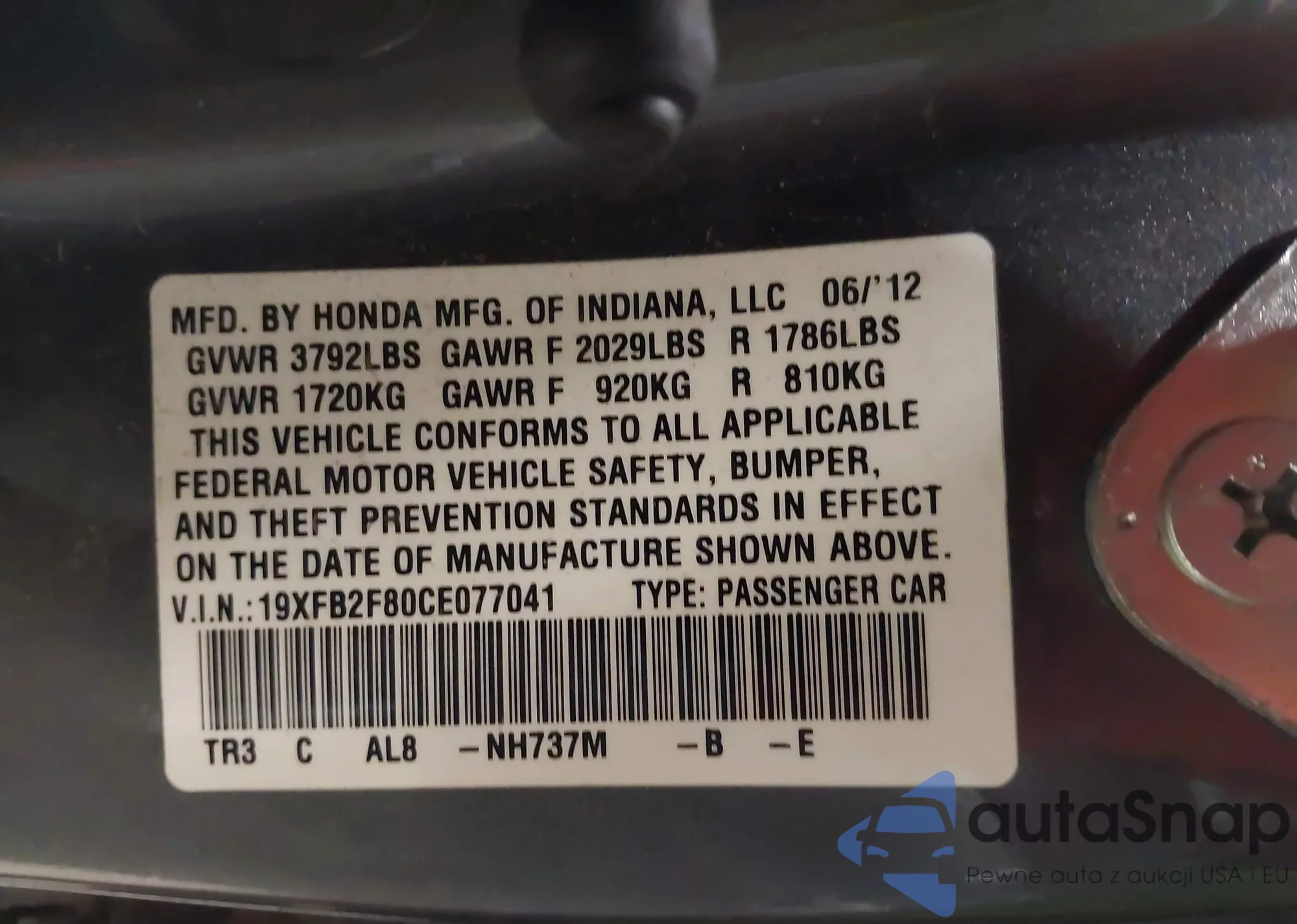 • VIN 19XFB2F80CE077041