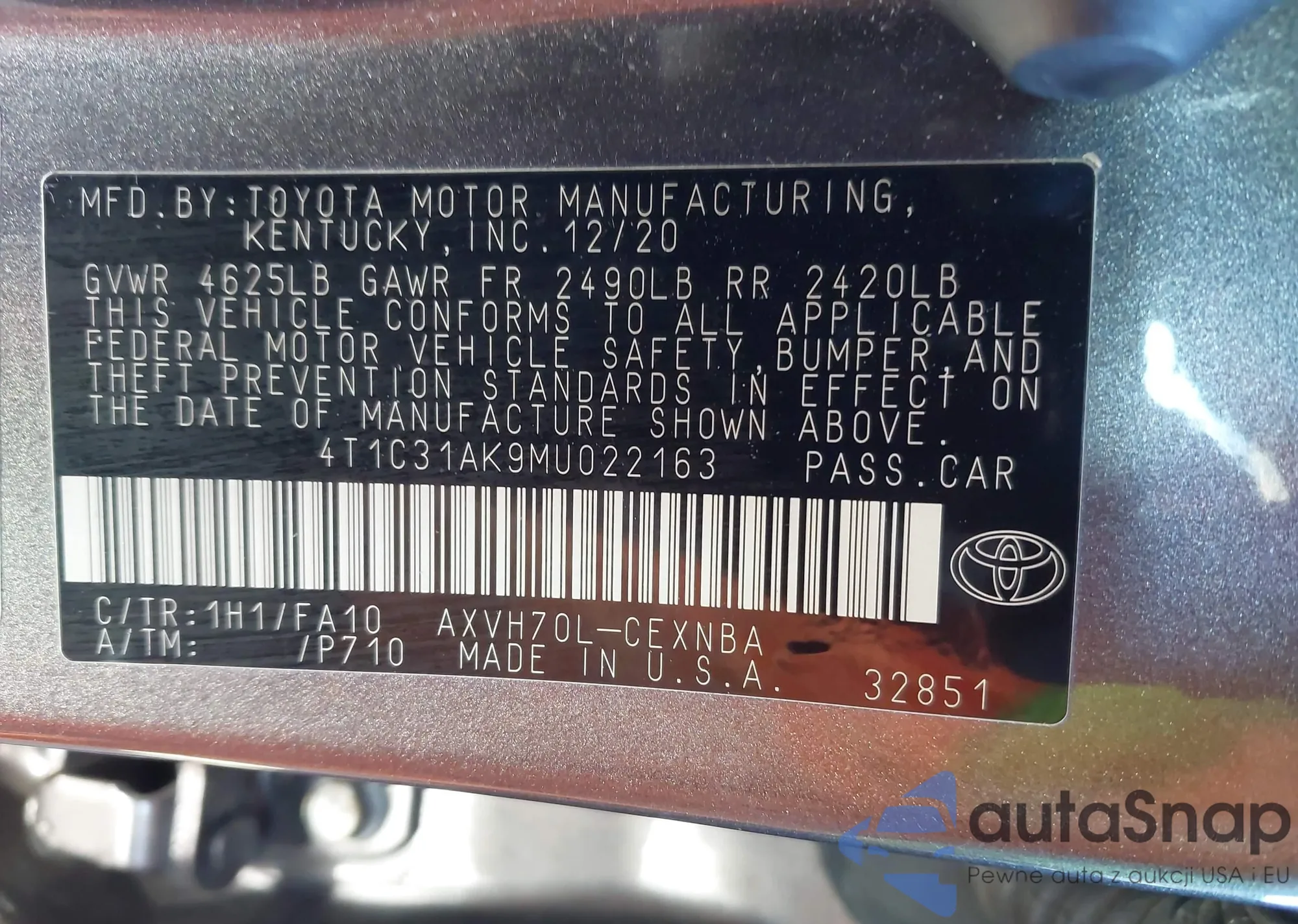 • VIN 4T1C31AK9MU022163