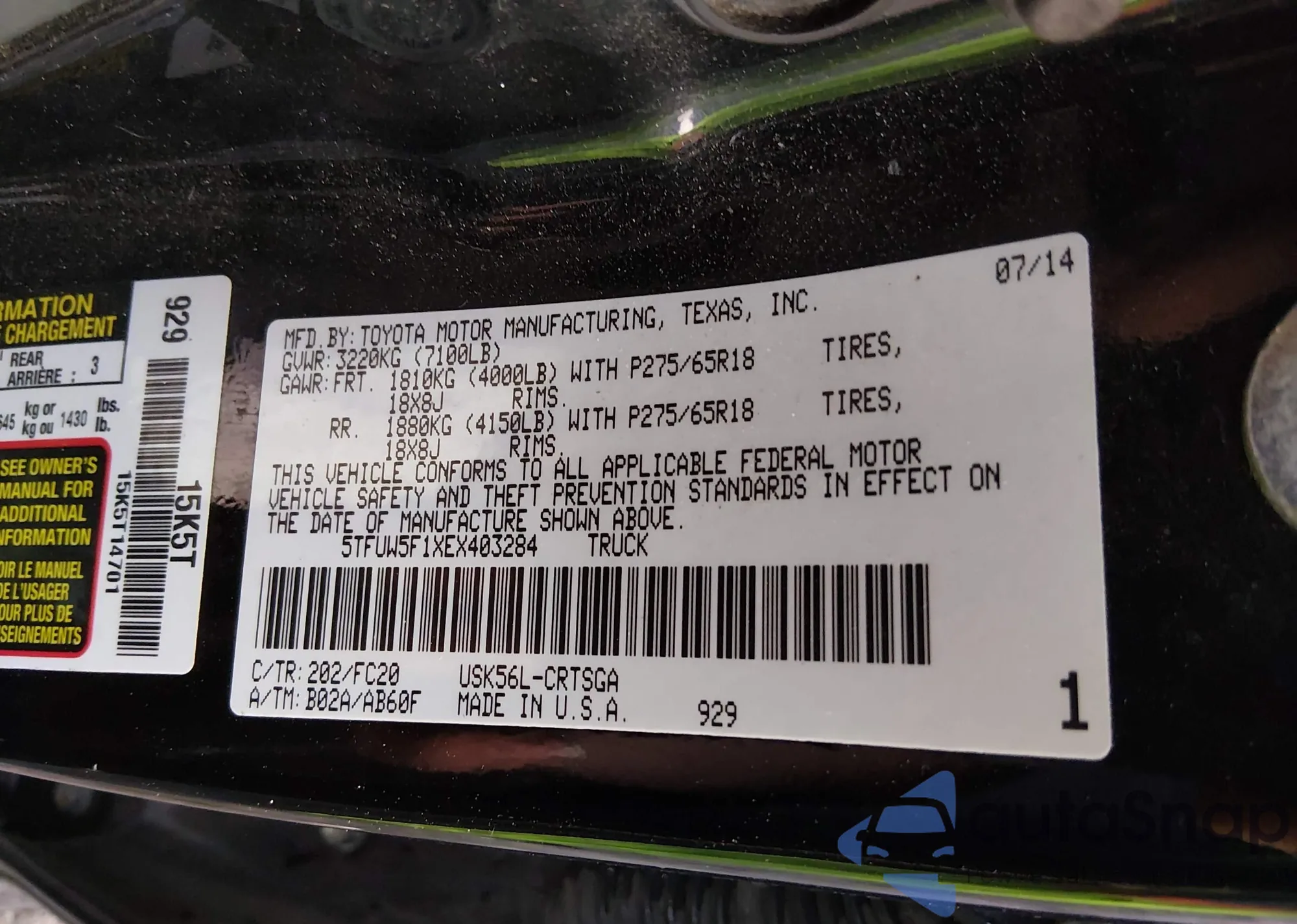 LOT: 44024412 VIN: 5TFUW5F1XEX403284