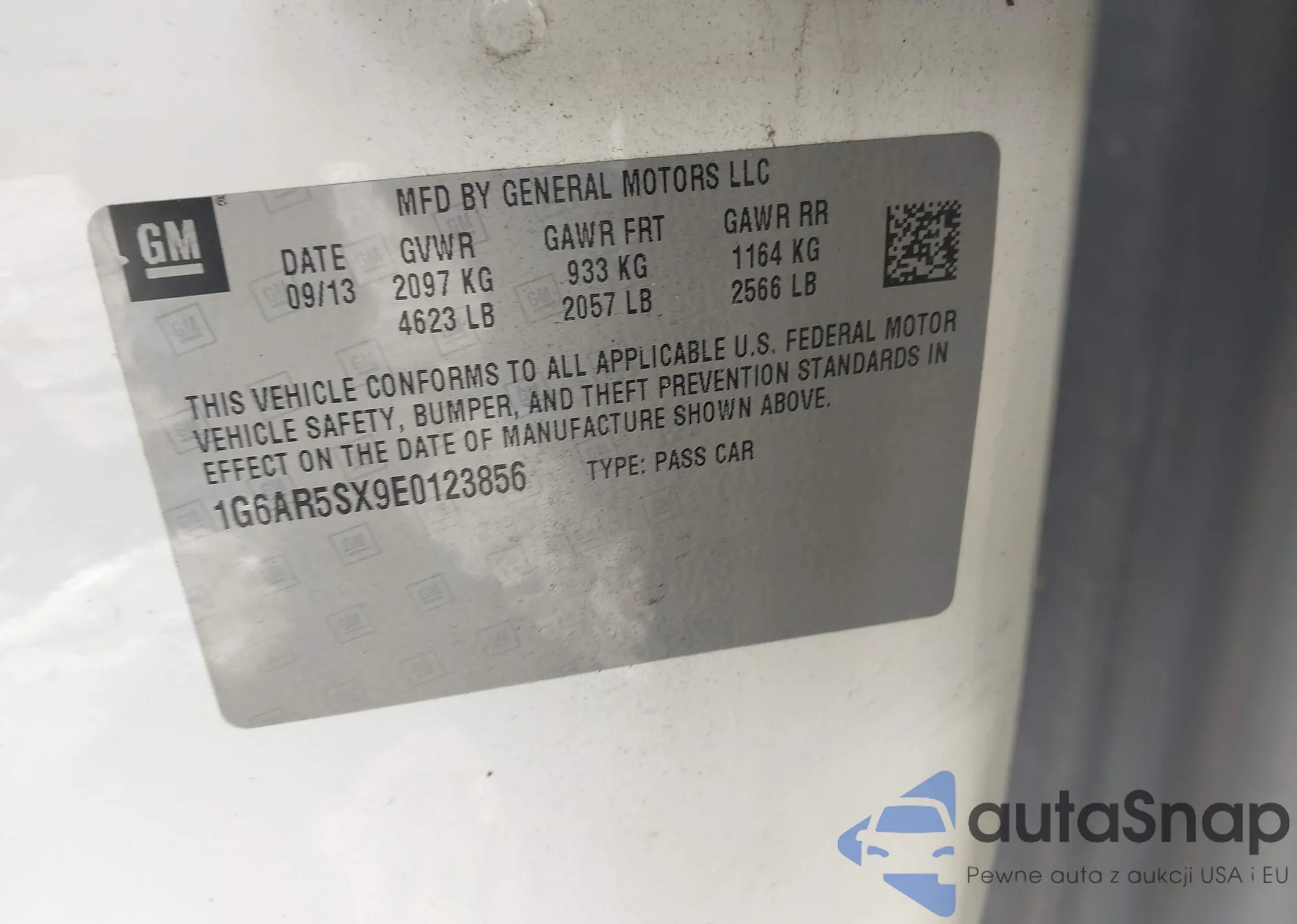 • VIN 1G6AR5SX9E0123856