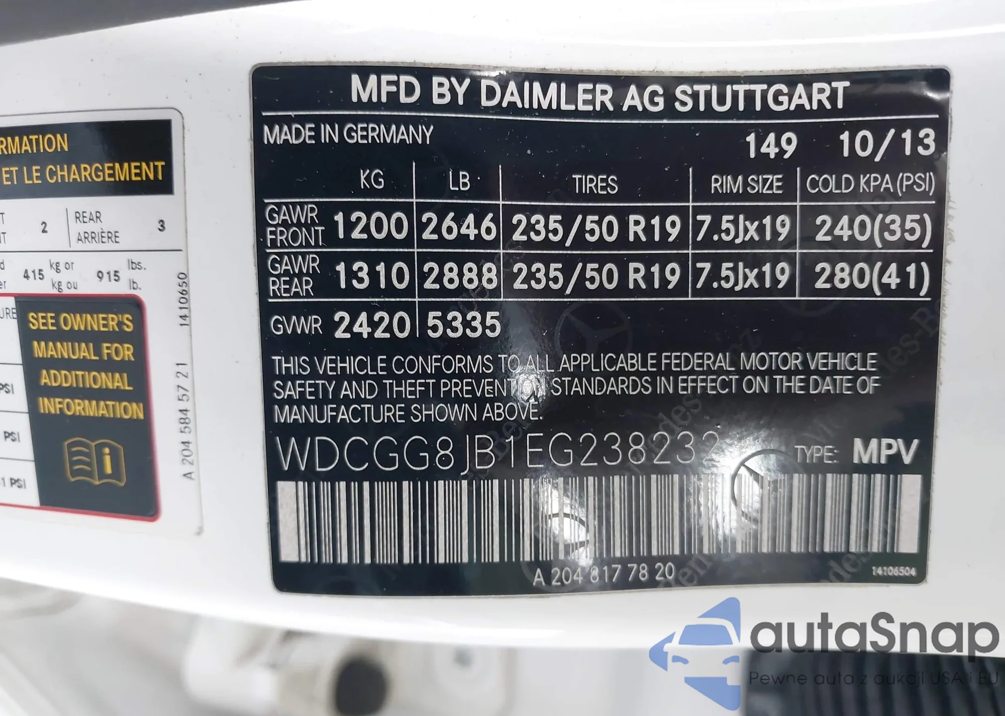 • VIN WDCGG8JB1EG238232