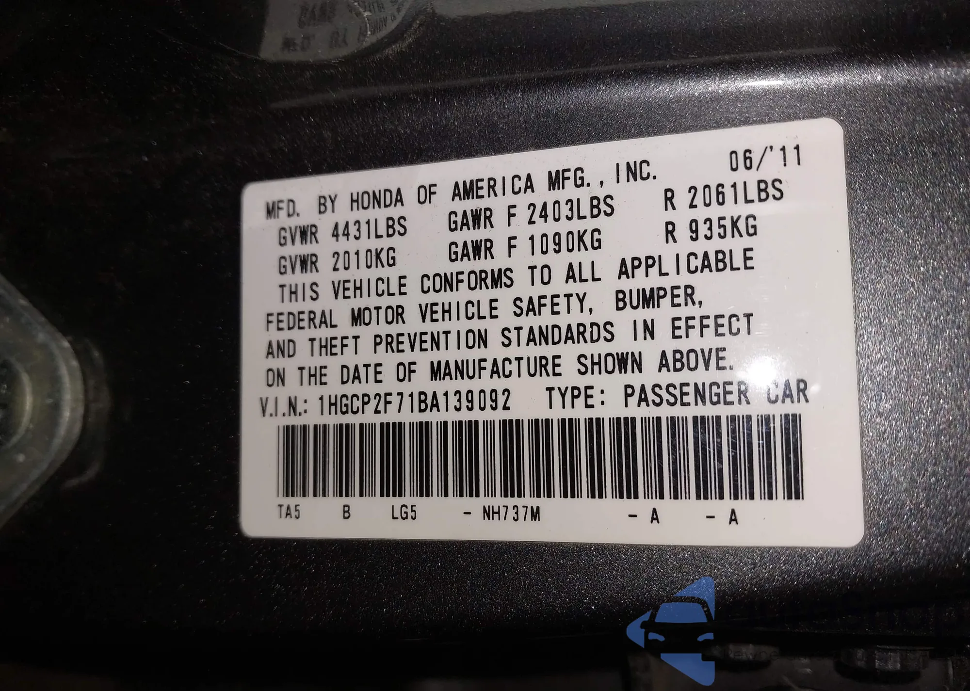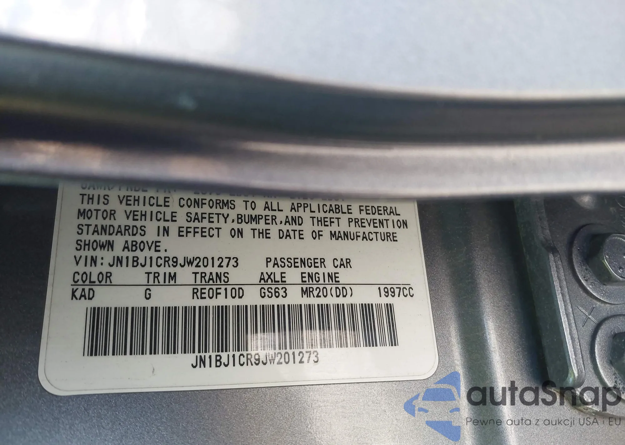 • VIN 1N4BL3AP0FC176444