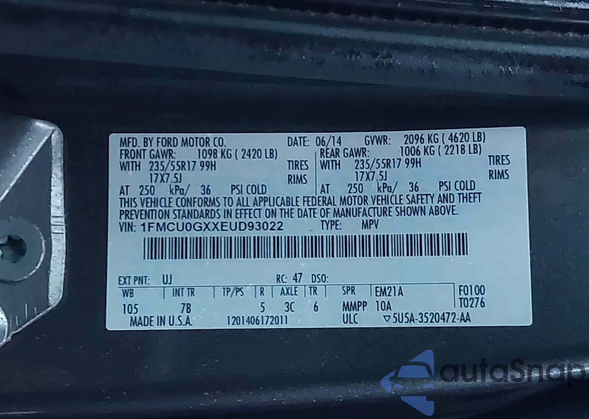 • VIN 1FMCU0GXXEUD93022