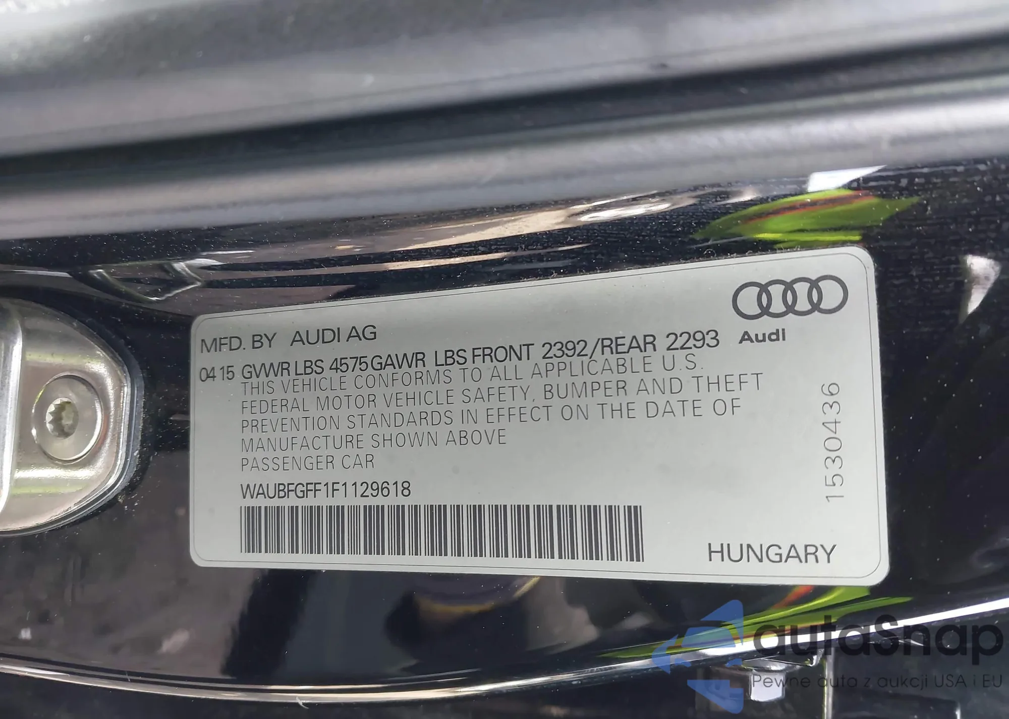 LOT: 43892572 VIN: WAUBFGFF1F1129618