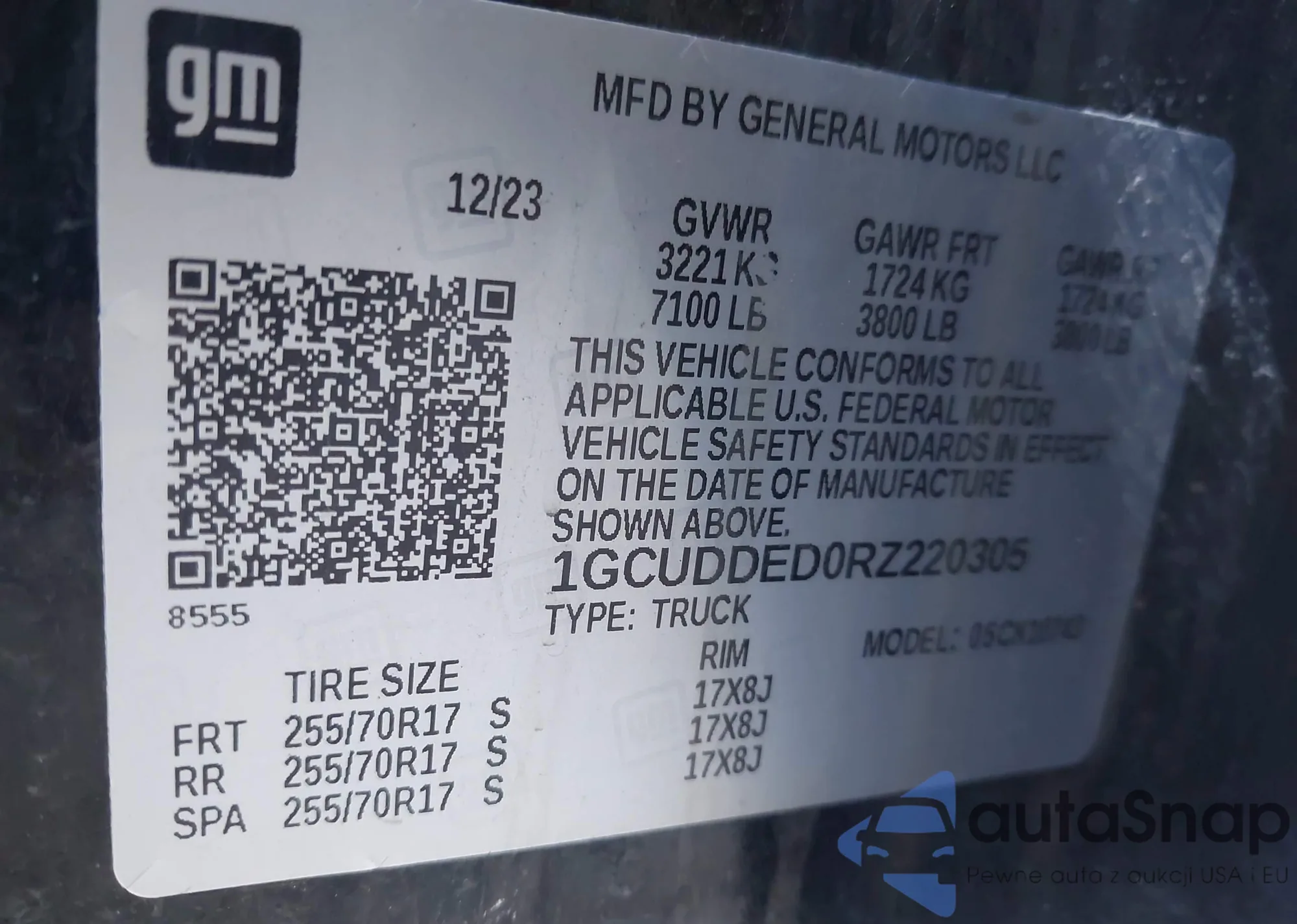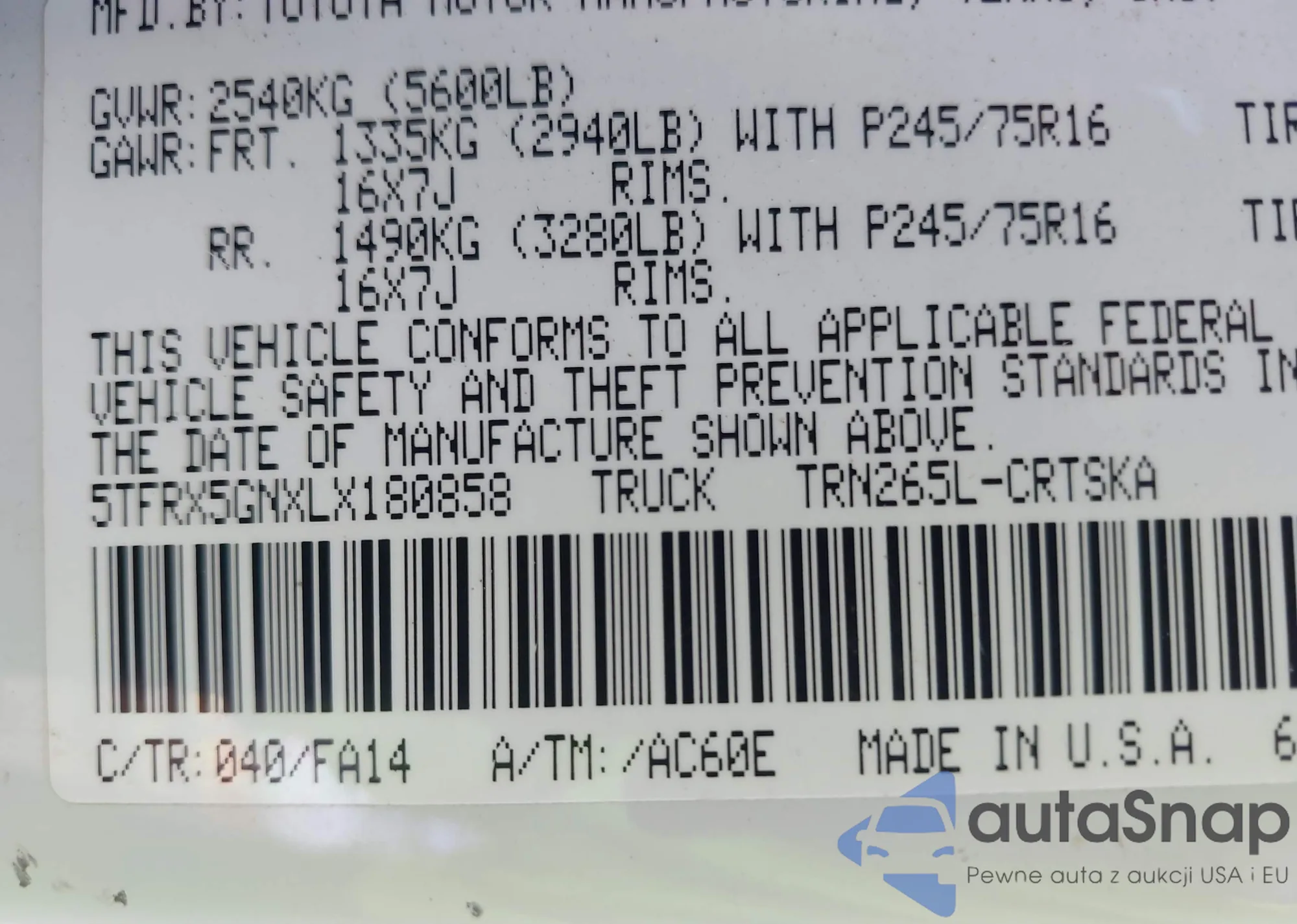 • VIN 5TFRX5GNXLX180858
